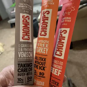 Can't choose? We know the feeling! Try a great sampling of our six CHOMPS best-selling varieties today! You'll get one of each: Original Beef, Jalapeno Beef, Sea Salt Beef, Taco Seasoned Beef, Smoky BBQ Beef, and Salt & Pepper Venison.