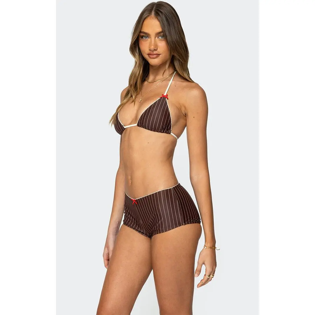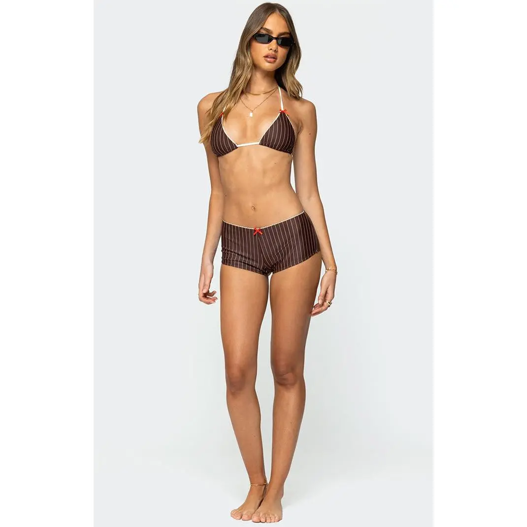 5. Edikted Women's Pinstripe Triangle Bikini Top