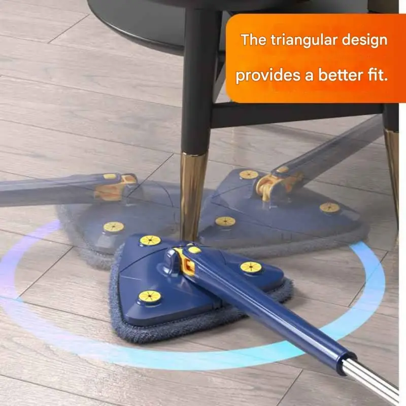 Triangular 360° Rotatable Floor Mop with Long Handle - Hands-Free Wringing, Wet & Dry Use Cleaning Tool for Floors, Walls, Ceilings, Corners & Glass