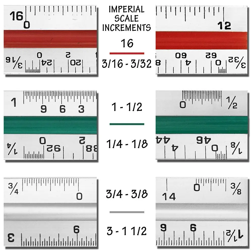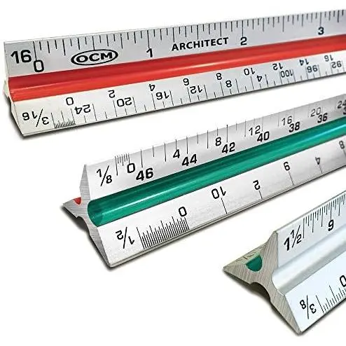 1 Triangular Architect Scale Ruler (Professional Grade Solid ) Color Coded 12 Inch Architectural Scale (Imperial Measurements) - Ideal for Architects, Engineers, Draftsman and Students
