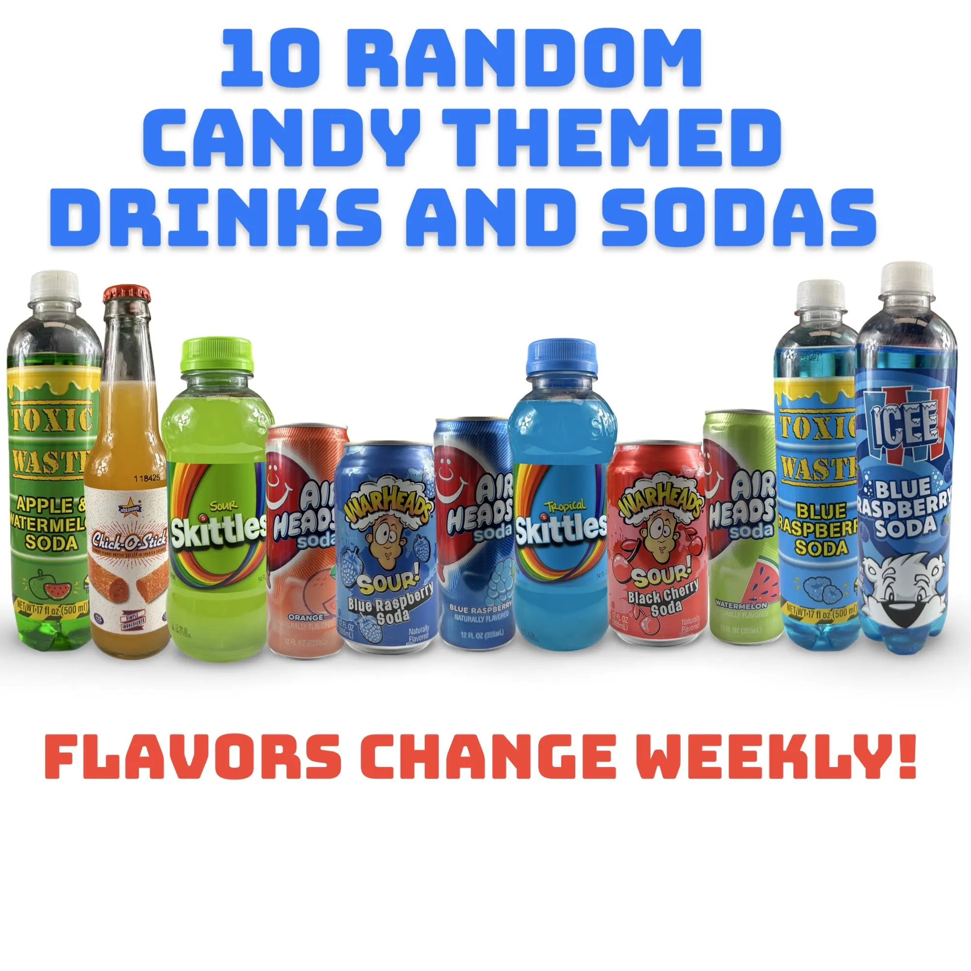 Get ready for a surprise with our Mystery Candy & Fun Drink Sampler Box! Every box includes 10 different cans or bottles, featuring candy-inspired, novelty, and fun themed drinks — with no duplicates in any single box.