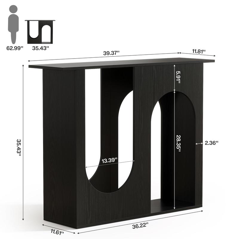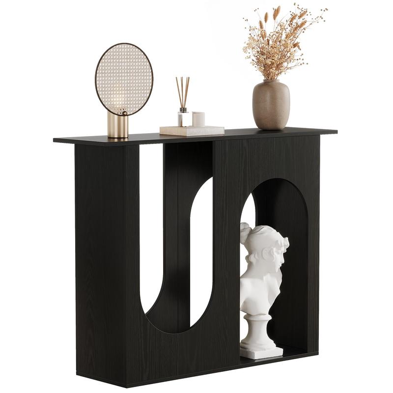 Unique Arched Design: With its mysterious black hue, this black console table exudes elegance. Its base adopts double arch elements, enhancing minimalist design through visual impact and spatial aesthetics