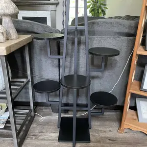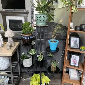 The warm wood tonal finish meets a rigid black metal frame in retro industrial style, while accented with chic high and low layer round shelf designs, this plant stand for indoor plants multiple is the best artwork to display your favorite potted plants, providing you a refreshed air to your busy life and set your mind free.