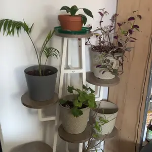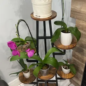 【Large Load Capacity】Made of high-quality engineered wood and heavy-duty metal frame, the plant pot rack is sturdy and durable with long service life. The stable structure ensures each shelf can support 45lbs and totally can bear up to 200 lbs on this plant shelf.