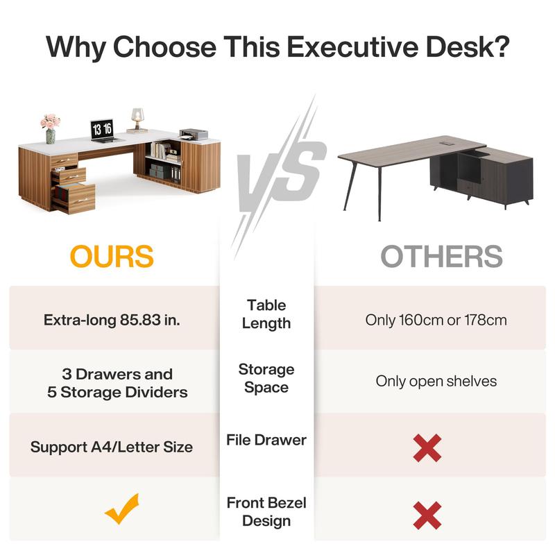 Command Central for High Achievers: With a generous 85.8ā W x 54.7ā D L-shaped layout, this large executive desk transforms your office into a powerhouse of productivity. From dual monitors to paperwork mountains, there's room for everythingāand then some