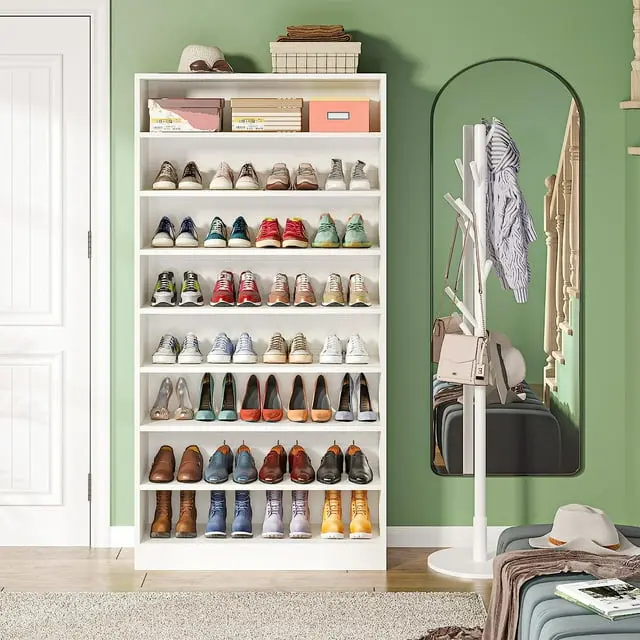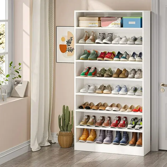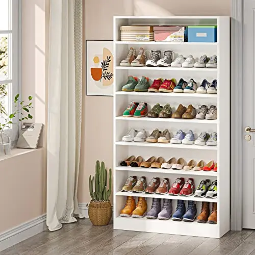 Tribesigns 9-Tier Shoe Cabinet, with its spacious design and open storage compartments, this 70.8 inches shoe cabinet can comfortably accommodate 40-45 pairs of shoes, making it the perfect addition to any shoe lover's collection.
