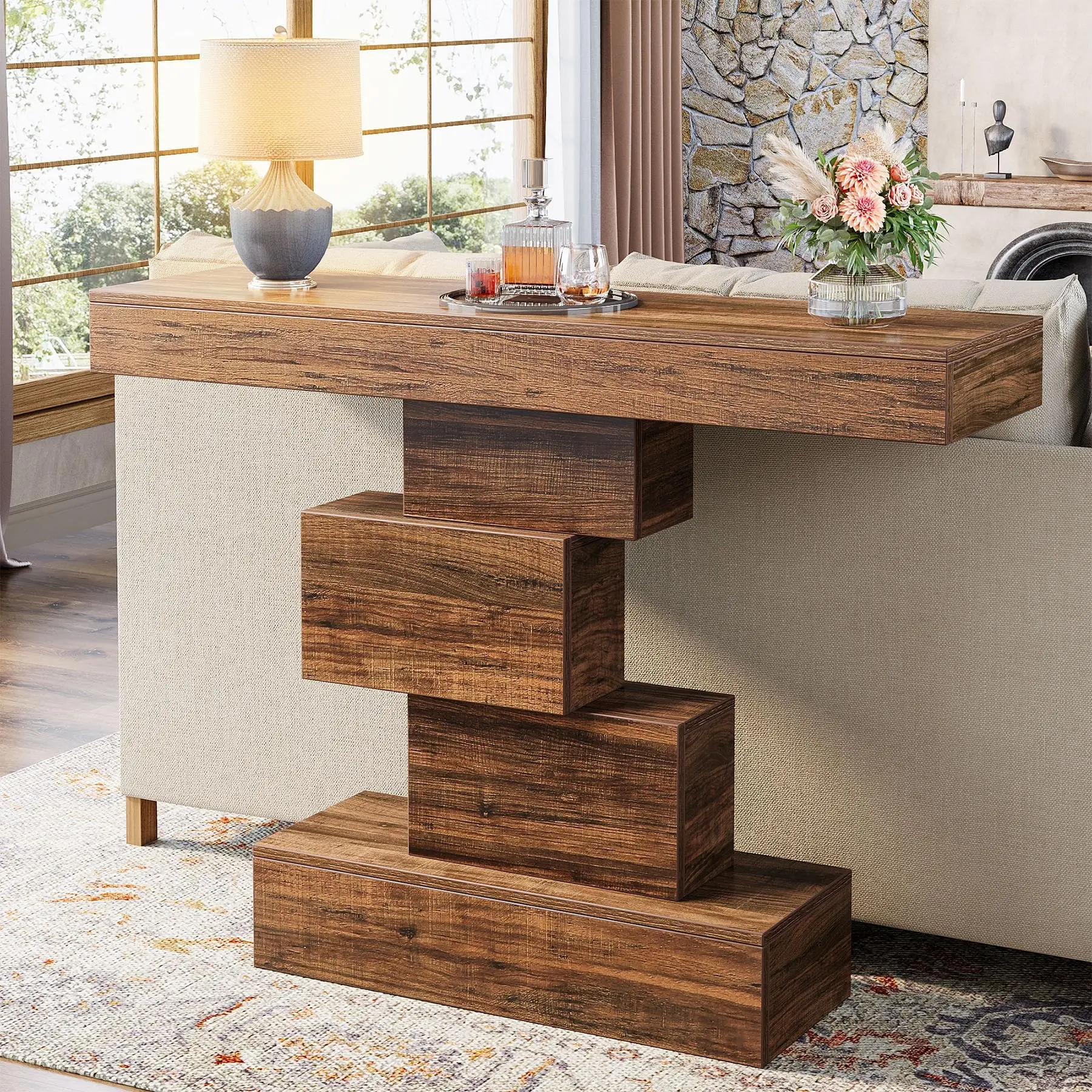 Versatile Use: With its striking appearance, the hallway table shines as a sofa table behind the couch, greets guests as an entry table in the foyer, and stands as a decorative accent table. Its versatility makes it an essential piece for enhancing any space