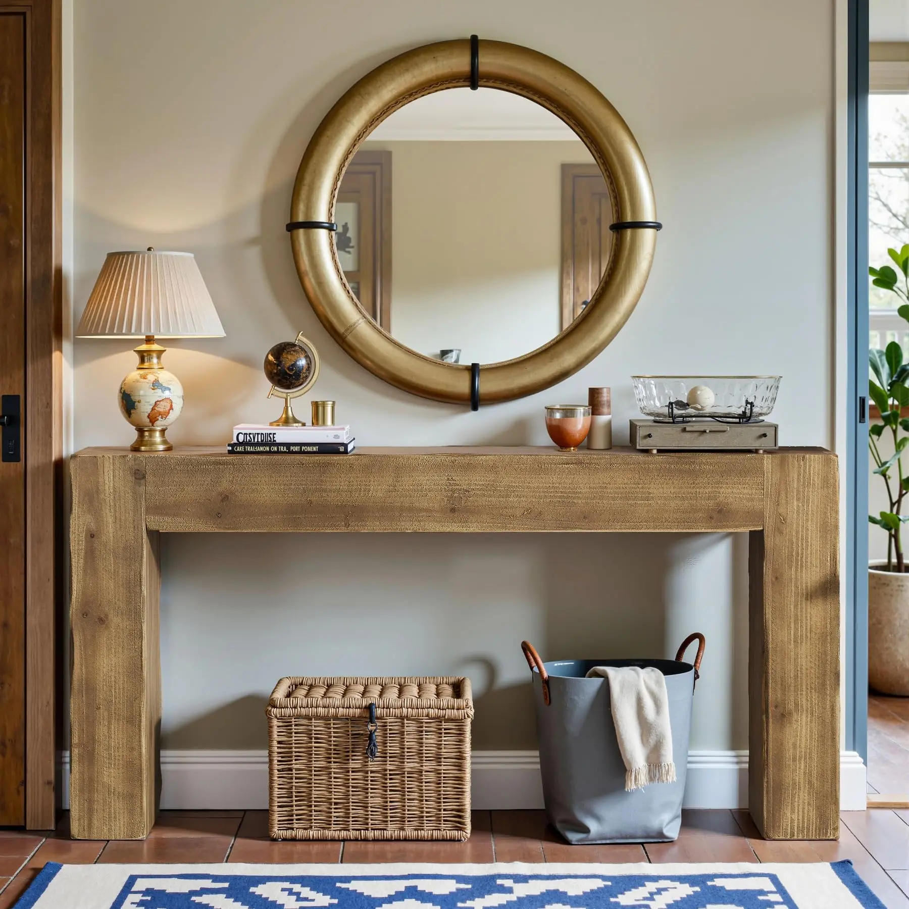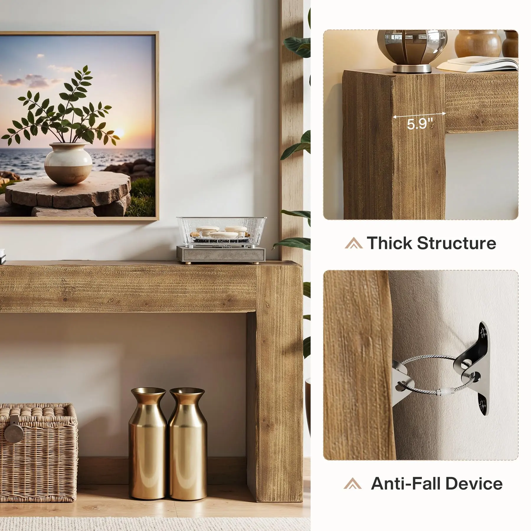 Solid Wood Build: Meticulously crafted from thick solid wood, the farmhouse entryway table offers a reassuring sense of stability. Over time, it develops a beautiful patina, evolving gracefully and becoming a beloved fixture in your interior decor