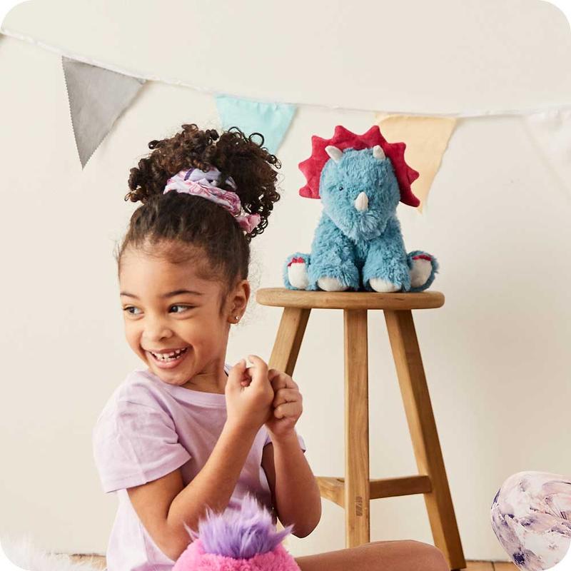 Soar into soothing comfort with Triceratops Warmies, named one of Oprah’s Favorite Things 2025!  Charge into cozy comfort with Triceratops Warmies. This three-horned prehistoric pal warms in the microwave for soothing relief, is gently weighted for relaxation and lavender-scented for calm.
