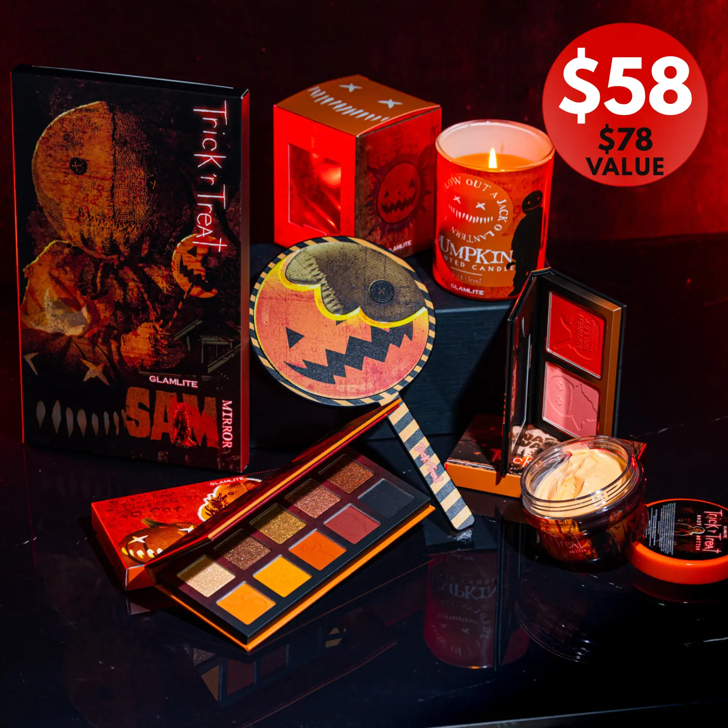 Glamlite cs is terrible. 2nd time they refuse to exchange damaged merchandise . Not damaged in transit but used product and dirty smeared mirrors. I message and get 1 response asking what the issue is but no resolution after . Worst experience with this company. In the process of reporting to bbb. Iโm not even asking for refund just an exchange of damaged goods. Halloween 2 compact makeup inside was damaged. Trick r treat mirror broken. Trt body butter open with no white lid/scoop and 1/3 empty. Feels like I got someoneโs return that wasnt checked.