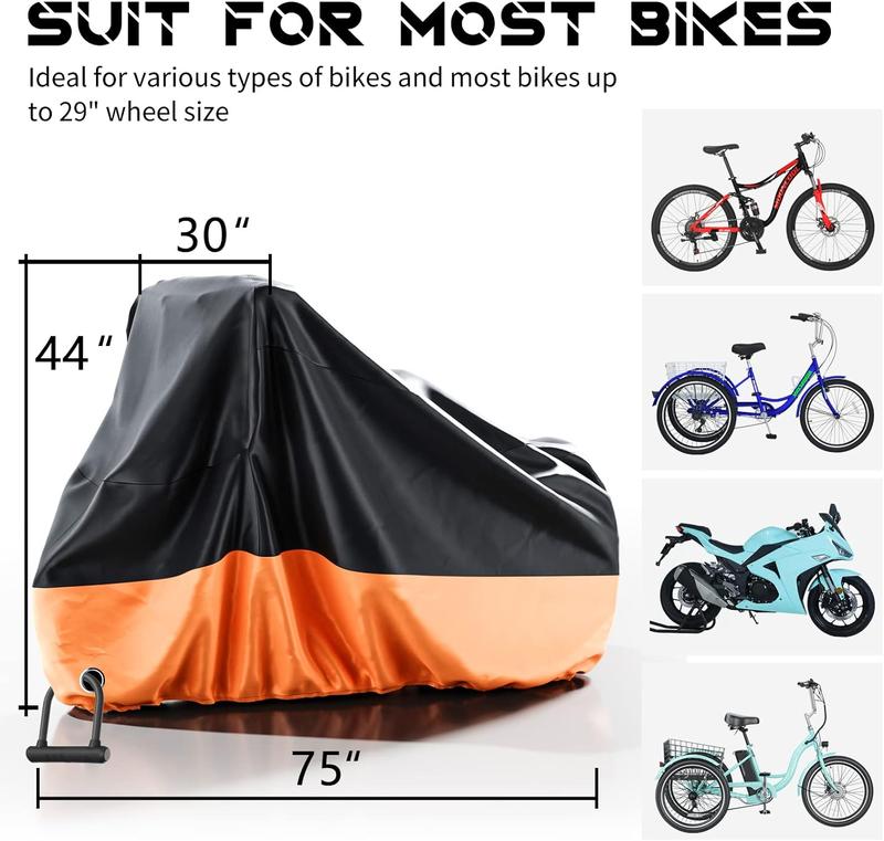 ·Waterproof Material: Made of waterproof polyester with PU and UV coating protects bicycles from weather, dust, dirt and sun damage.