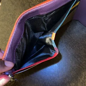 I love this wallet. Enough slot for cards and there is one for coins too. Multicolor is a pretty color.