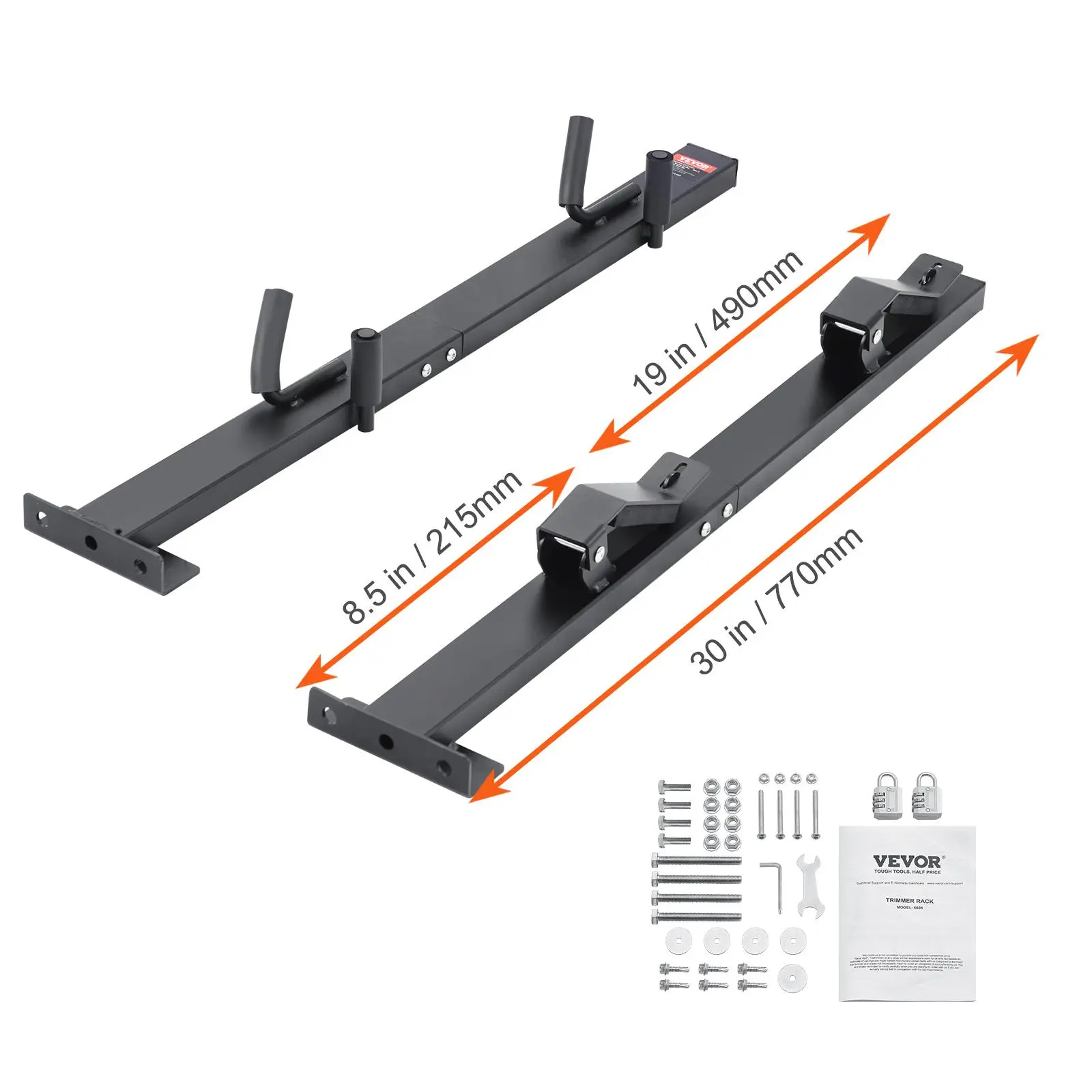 • Secure Multiple Fixation: Our 2-place trimmer racks feature fully foam-wrapped hooks for added protection, shock absorption, and noise reduction. This design prevents the suspended weight from slipping off during transport. The zinc alloy password lock effectively secures your machines and reduces worries about shaking or misplaced keys.