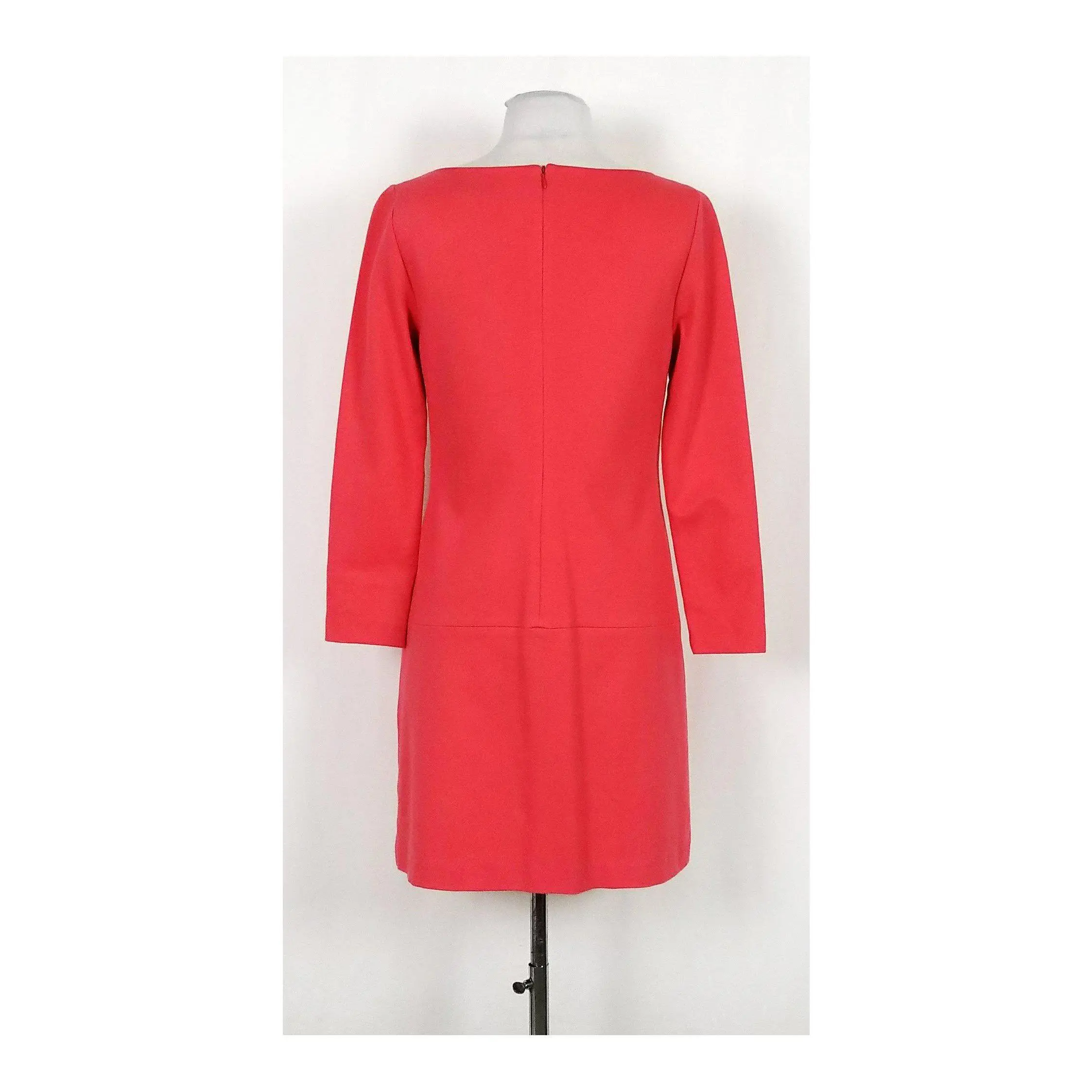 You are bound to stand out when you slip into this vibrant dress. Front pockets and a key hole neckline elevate the simple shift silhouette of the dress. Pair it with strappy gold sandals.