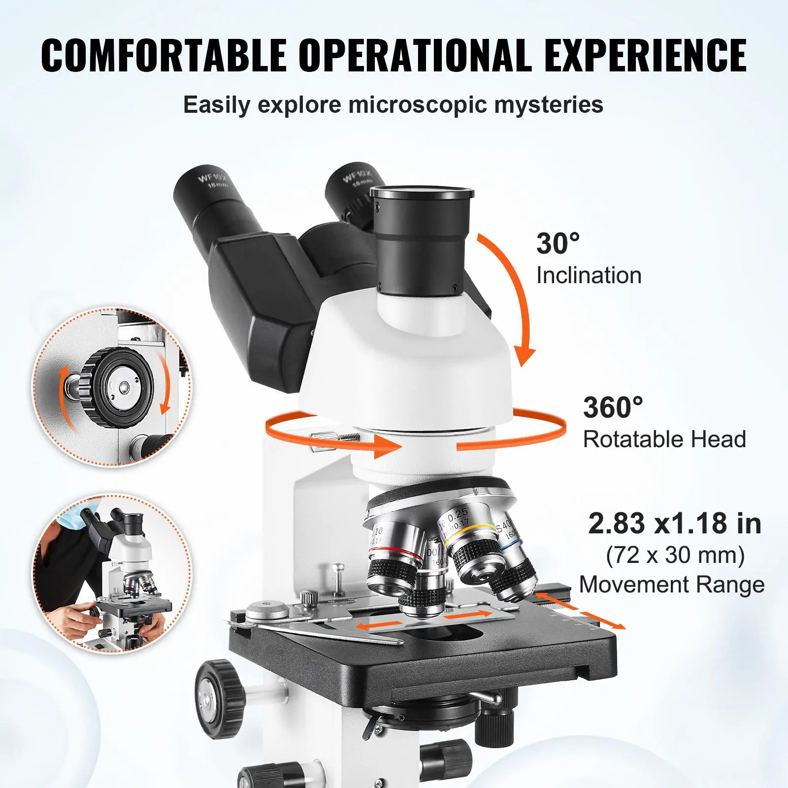 • User-Friendly Design: Designed with a dual-layer stage to secure specimens, our biological microscope with a rotatable observation head enhances comfort. The ergonomic focus knobs for effortless focal adjustments, providing a convenient user experience.