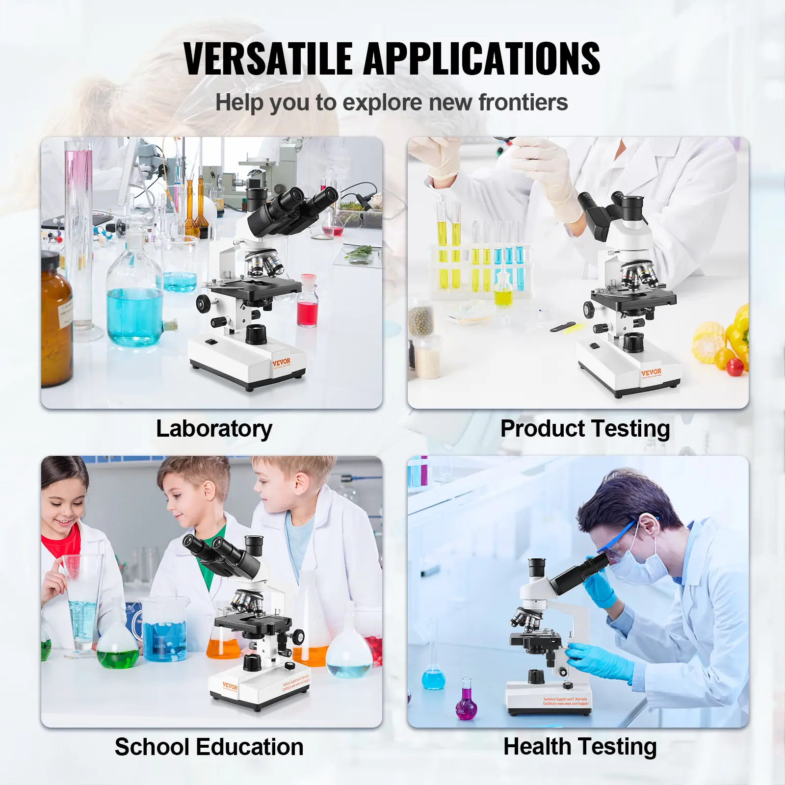 VEVOR Compound Trinocular Microscope,  40X-5000X Magnification Trinocular Compound Lab Microscope with Two-Layer Mechanical Stage, External Interface, LED Illumination and Microscope Slides Included