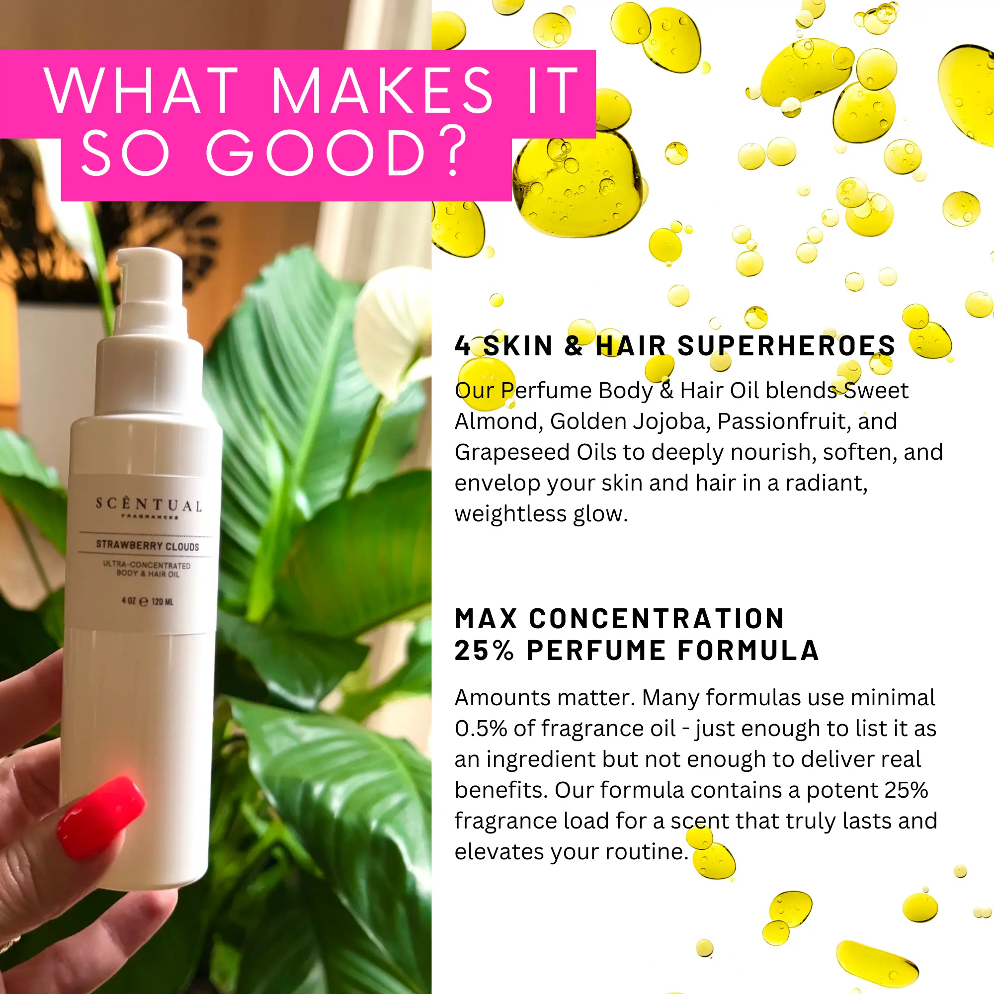 ·Ultra-Concentrated Body & Hair Oil (Full Size 4oz)Silky moisture + scent foundation. Leaves your skin glowing, smooth, and layered with warm sweetness.