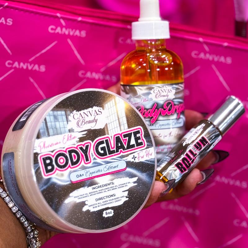 ·Pheromone Body Glaze – A silky, hydrating glaze that leaves your skin glowing and irresistible. Infused with alluring pheromones and sensual notes that last all day.