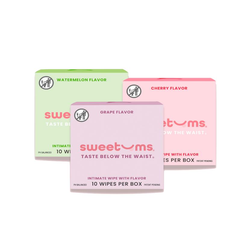Indulge in the Trio of Temptation Bundle, a seductive selection of our best-selling Sweetums wipes in Cherry, Watermelon, and Grape. Each flavor delivers its own irresistible vibe — playful, juicy, and oh-so-satisfying.