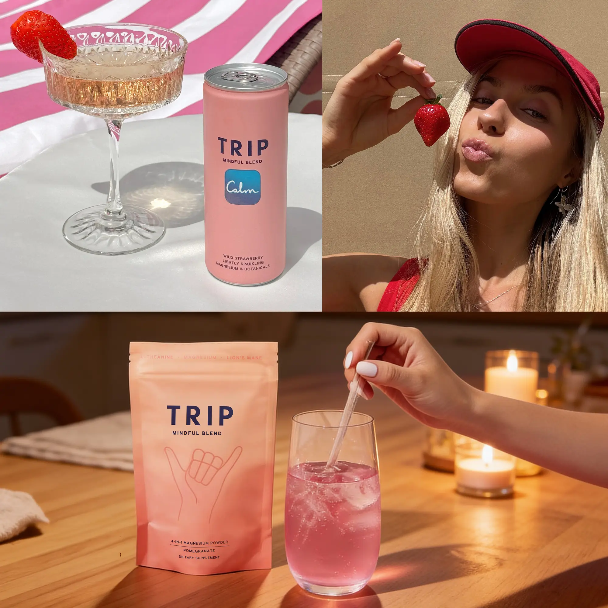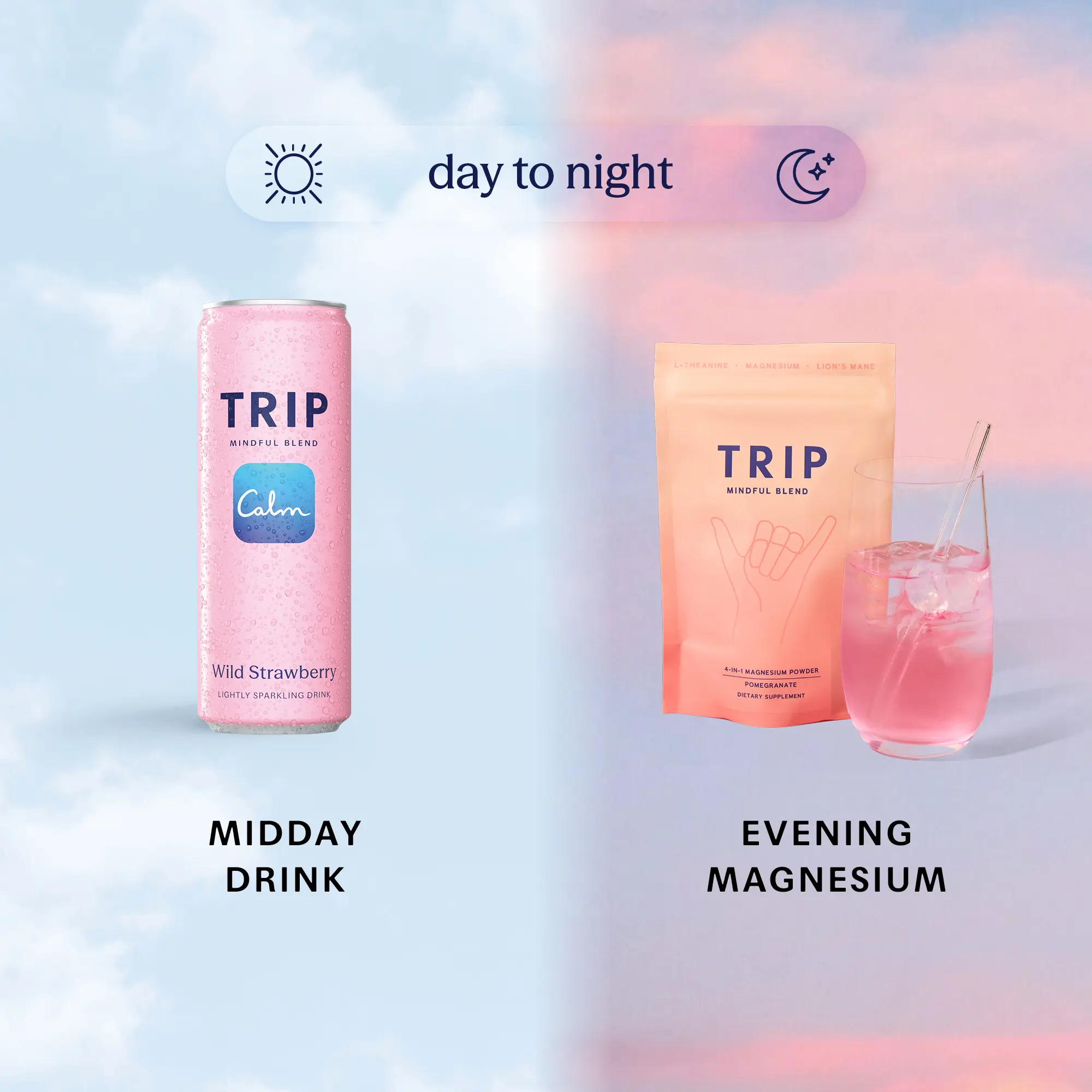 Elevate your wellness journey with the TRIP Daily Reset Bundle. This duo pairs our best-selling Wild Strawberry Adaptogen Premium Lightly Sparkling Drink with our high-absorption Pomegranate Orange Blossom Magnesium Powder. Whether you’re looking to find your flow at work or wind down after a long day, this botanical-infused kit helps you stay balanced, hydrated, and centered.