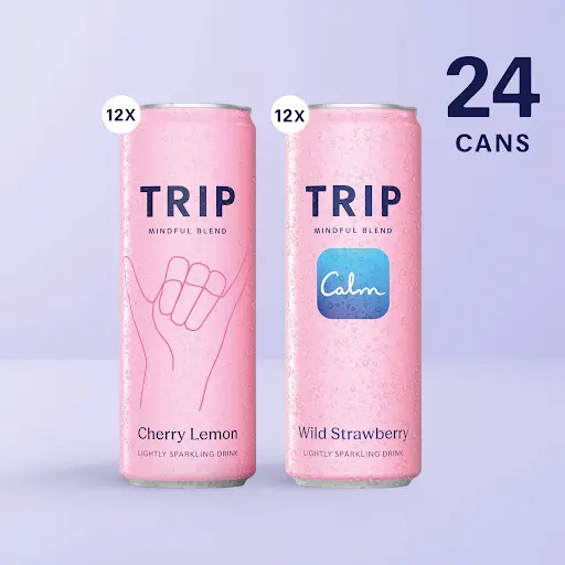 Double up on your daily calm with the TRIP Premium Variety Bundle. This set combines 12 cans of our soothing Cherry Lemon blend with 12 cans of our revitalizing Wild Strawberry lighlty sparkling drink. Infused with a powerful mix of magnesium and adaptogens, this bundle is designed to help you find your zen, whether you’re powering through a workday or winding down for the night.
