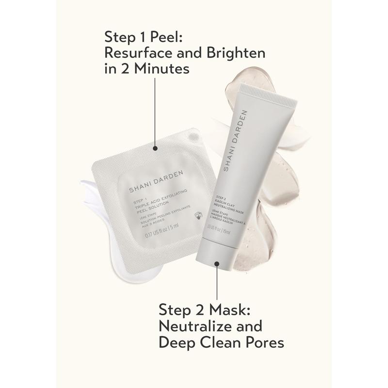 | Ingredients | TRIPLE ACID EXFOLIATING SOLUTION INGREDIENTS/ INGRÉDIENTS: Aqua / Water / Eau,Lactic Acid,Glycolic Acid,Propanediol,Hamamelis Virginiana (Witch Hazel) Water,Mandelic Acid,Sodium Hydroxide,Acacia Senegal Gum,Musa Sapientum (Banana) Pulp Extract,Cucumis Sativus (Cucumber) Extract,Spondias Mombin Pulp Extract,Mangifera Indica (Mango) Pulp Extract,Tetrasodium Glutamate Diacetate,Xanthan Gum,Caprylyl Glycol,Glyceryl Caprylate/Caprate,Potassium Sorbate,Sodium Benzoate,Benzoic Acid,Benzyl Alcohol KAOLIN CLAY NEUTRALIZING MASK INGREDIENTS/ INGRÉDIENTS: Aqua / Water / Eau,Sodium Bicarbonate,Kaolin,Dicaprylyl Ether,Bentonite,Behenyl Alcohol,Polyglyceryl-3 Stearate,Allantoin,Cucumis Sativus (Cucumber) Fruit Extract,Sodium PCA,Panthenol,Sodium Hyaluronate,Hydroxyproline,Proline,Magnesium Aluminum Silicate,Decyl Glucoside,Tocopherol,Ethylhexylglycerin,Phenoxyethanol,Titanium Dioxide (CI 77891) |