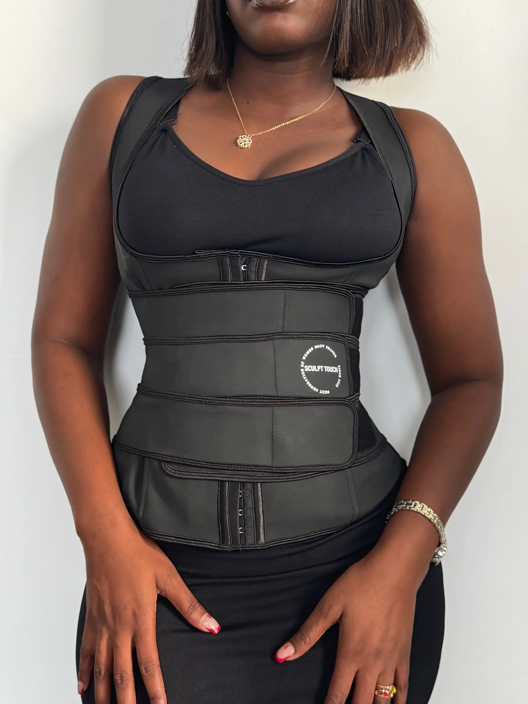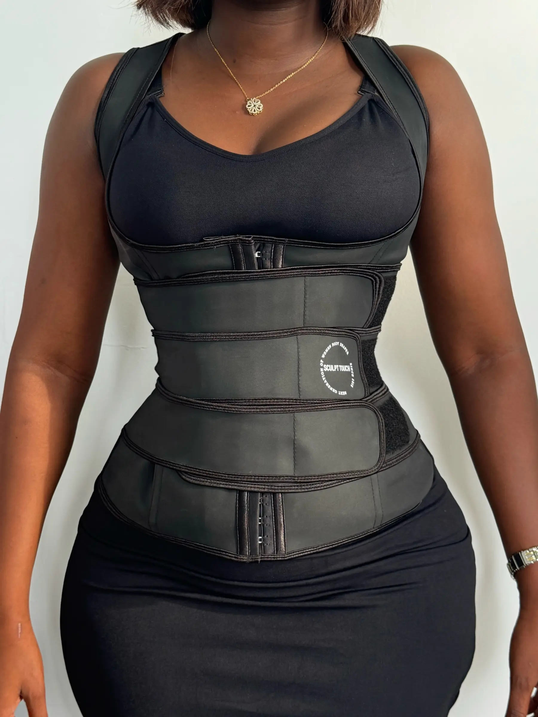 This is my second waist trainer from the company I've gotten the one with the two straps and I guess it's the The first one was to double straps now I've got the three strap face and I love it I love it I love it it takes care of that backpack makes my boobies look big