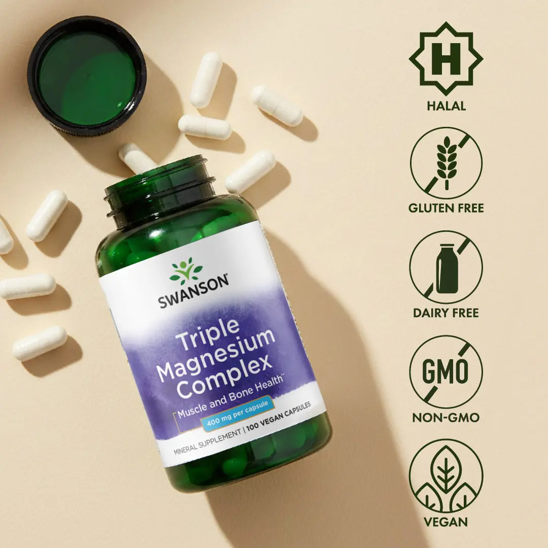 Swanson Triple Magnesium Complex is a valuable supplement for a strong, healthy body. It helps bridge the gap in magnesium intake, crucial for bone and muscle health. Magnesium transports calcium and activates vitamin D, supporting bone strength. This US-made product contains 400 mg of magnesium per serving, nearly a full day's supply. It’s ideal for those consuming less than the recommended amount of this essential mineral.