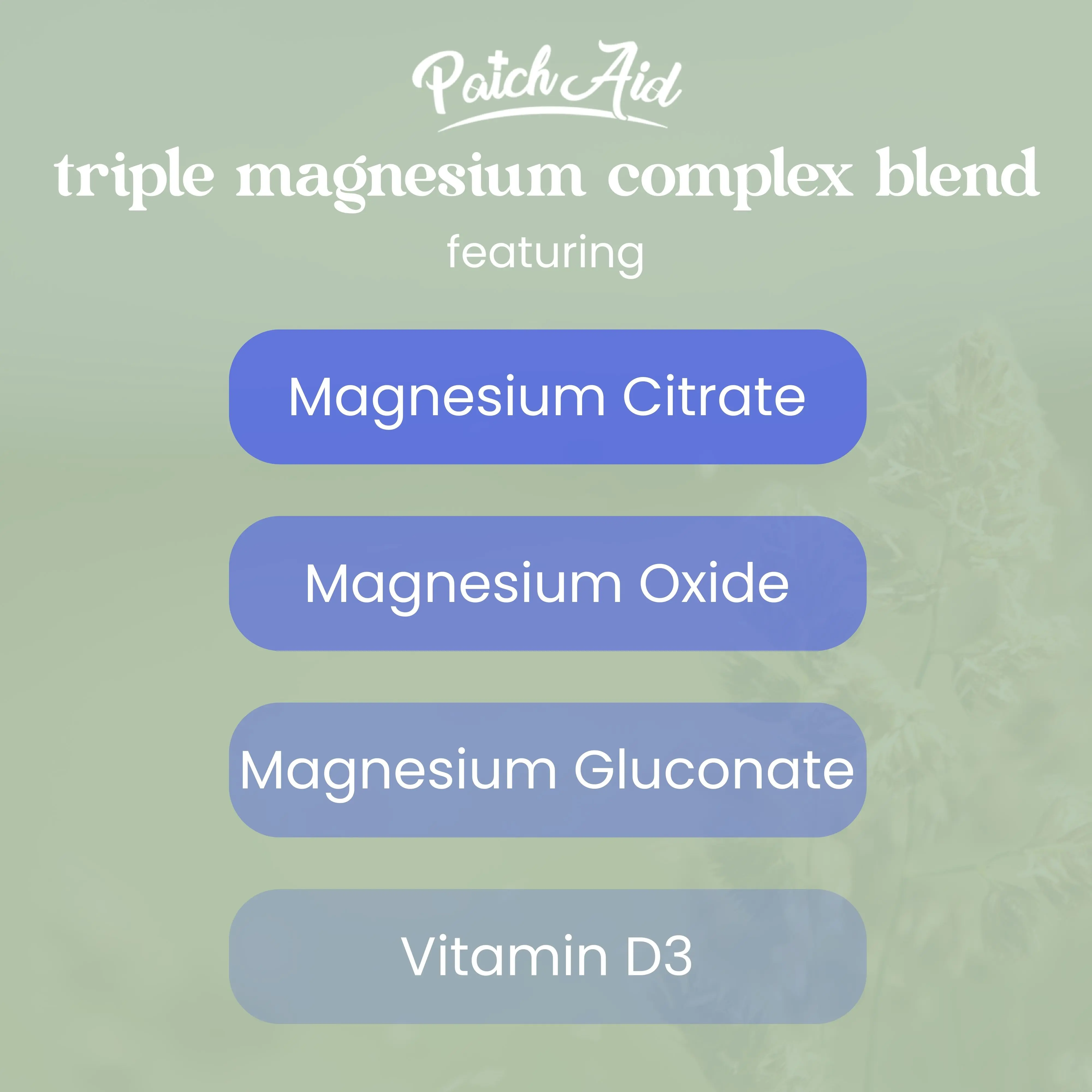 The Triple Magnesium Complex Patch offers a blend of three forms of magnesium in one simple, wearable patch—no powders, tablets, or digestive upset.