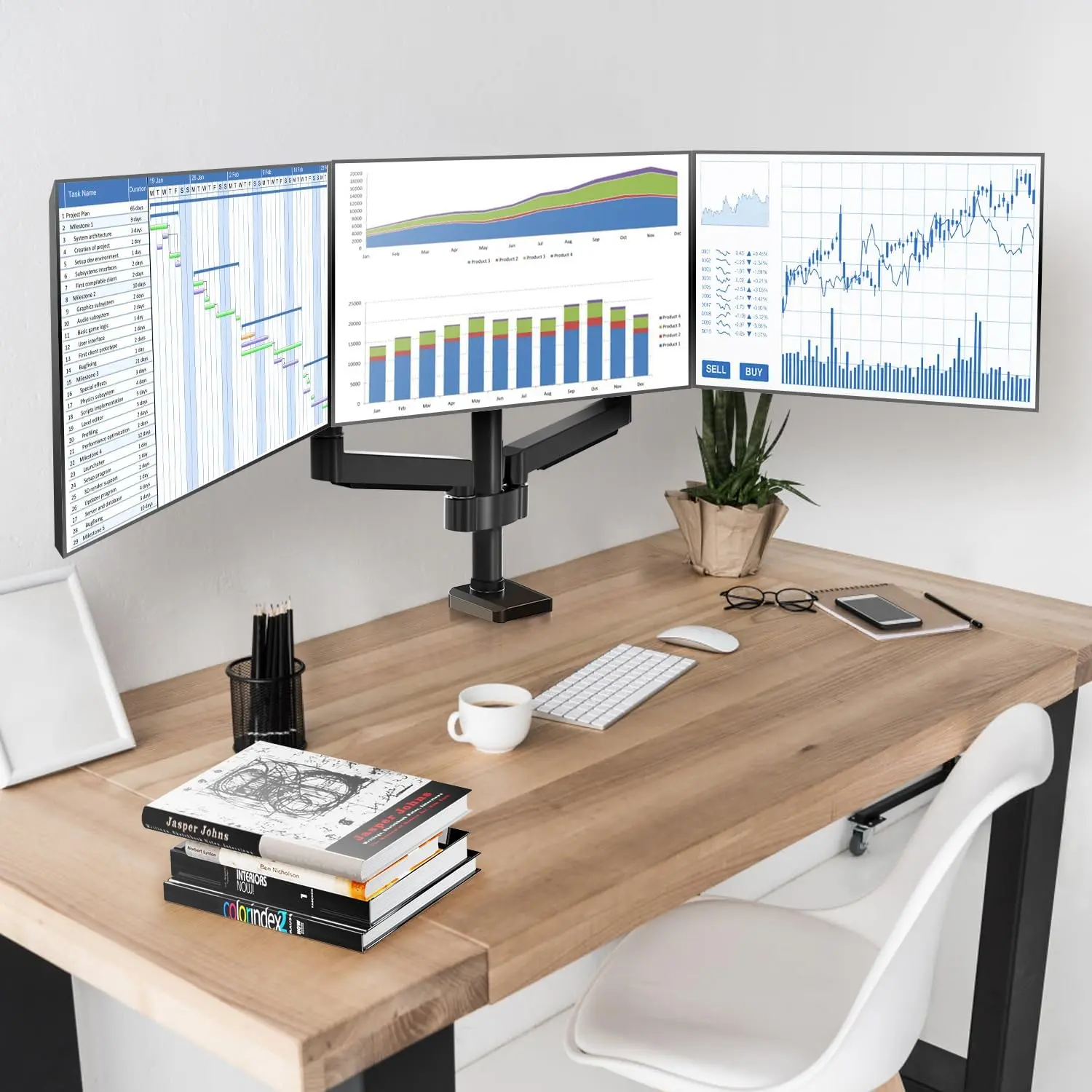 Mount-It! Triple Monitor Mount with Gas Spring Arms