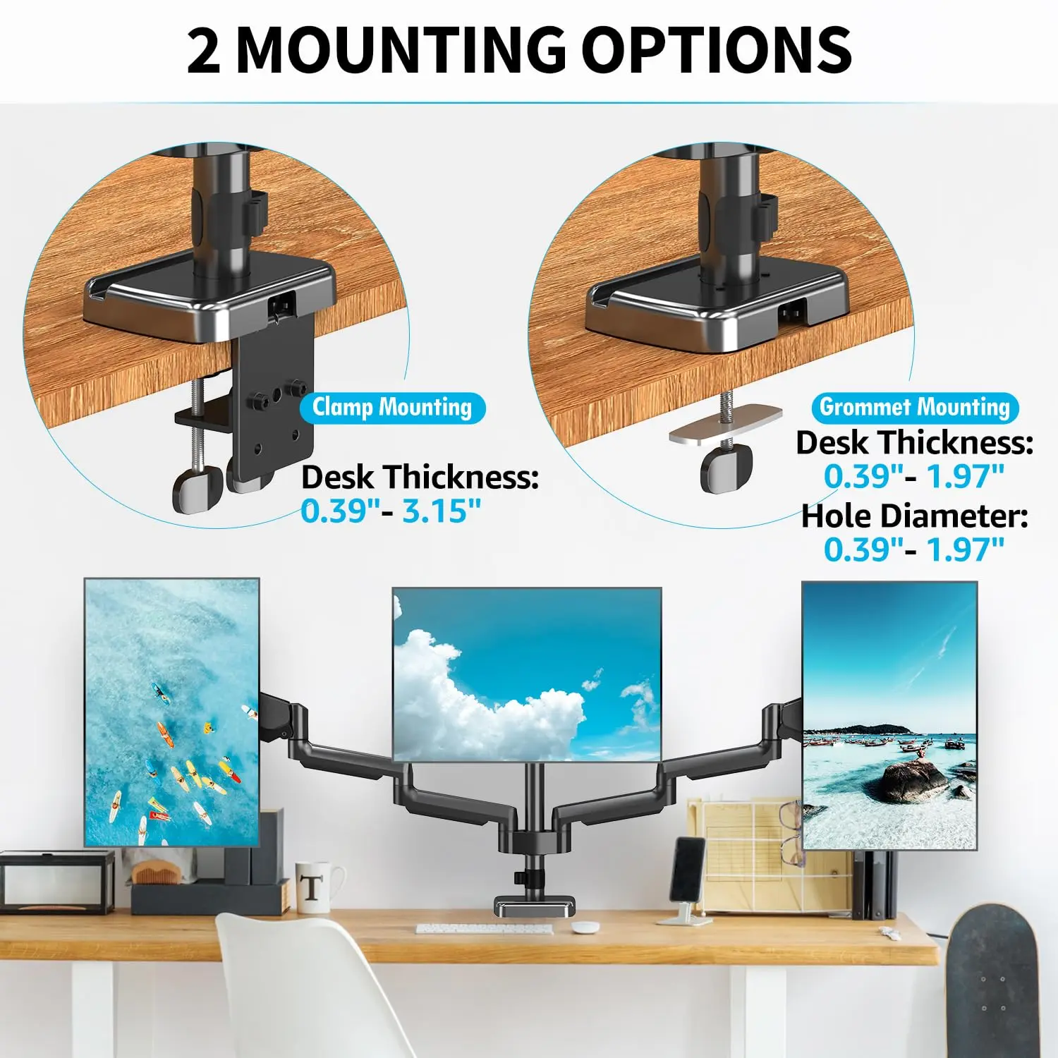 MOUNTUP 17"-27" Triple Monitor Stand Mount MU0006
