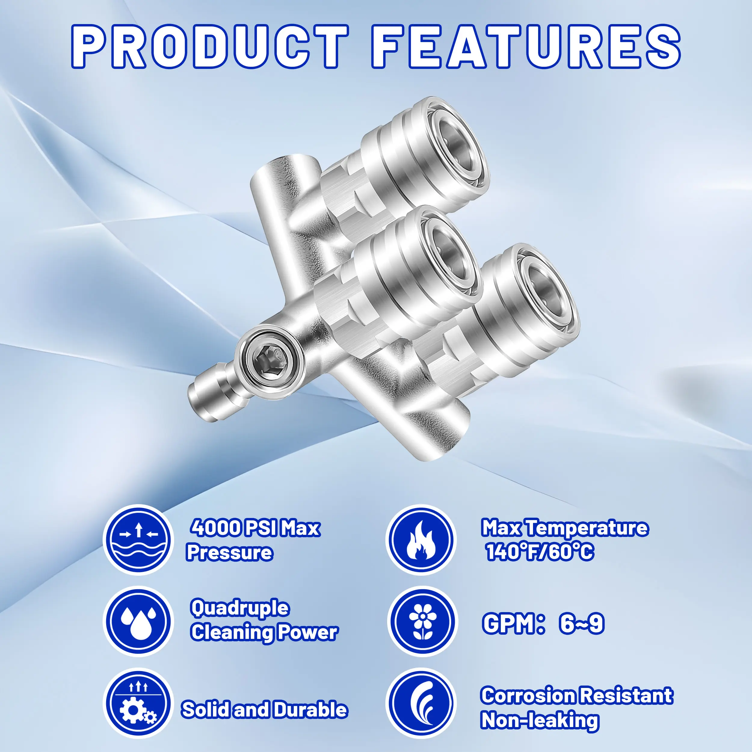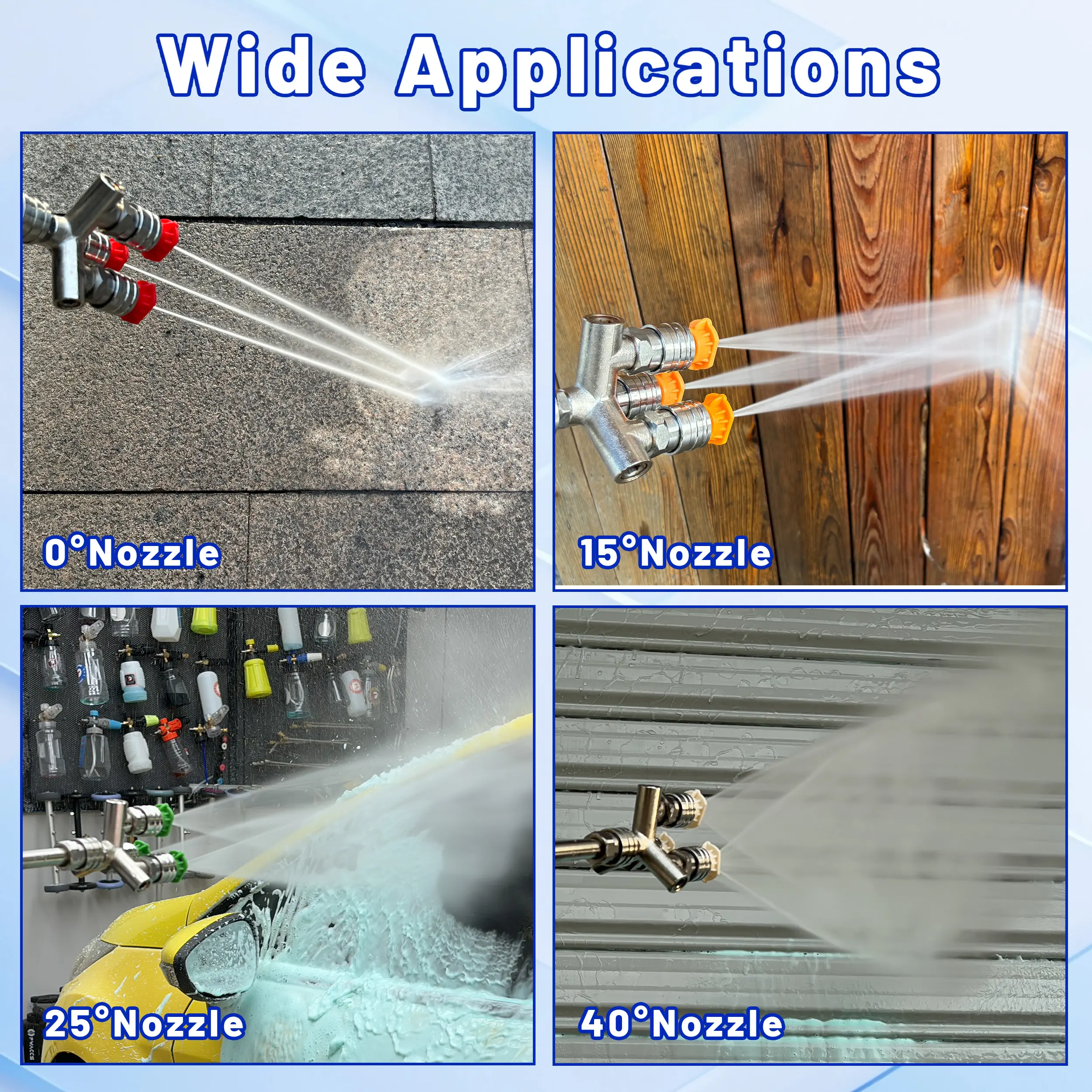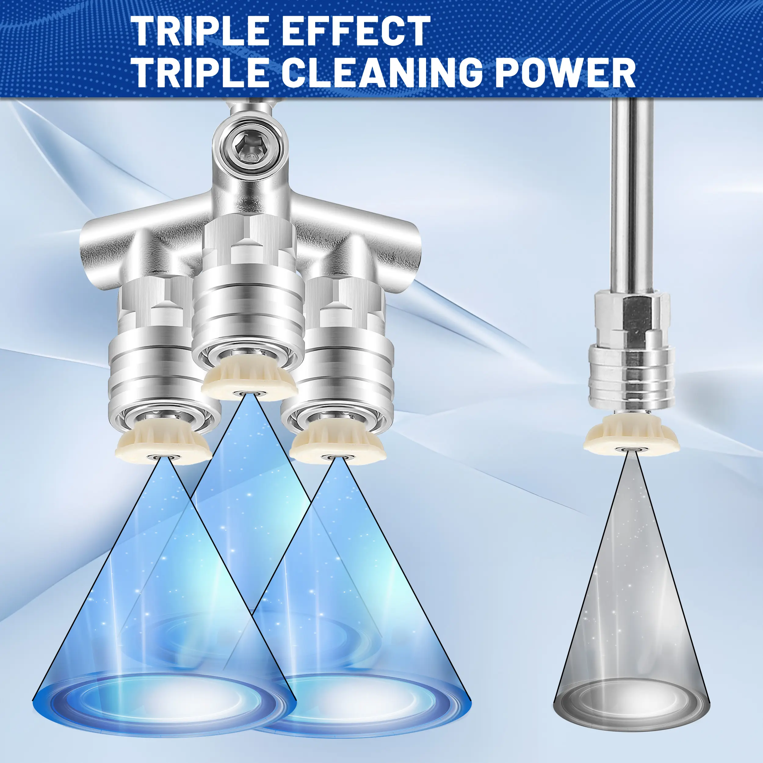 ·Triple Cleaning Efficiency: The upgraded pressure washer triple nozzle allows you to attach three nozzles simultaneously, delivering 3× the cleaning power. With increased spray coverage and water output, it expands your cleaning range and boosts efficiency, making tough tasks faster and easier.