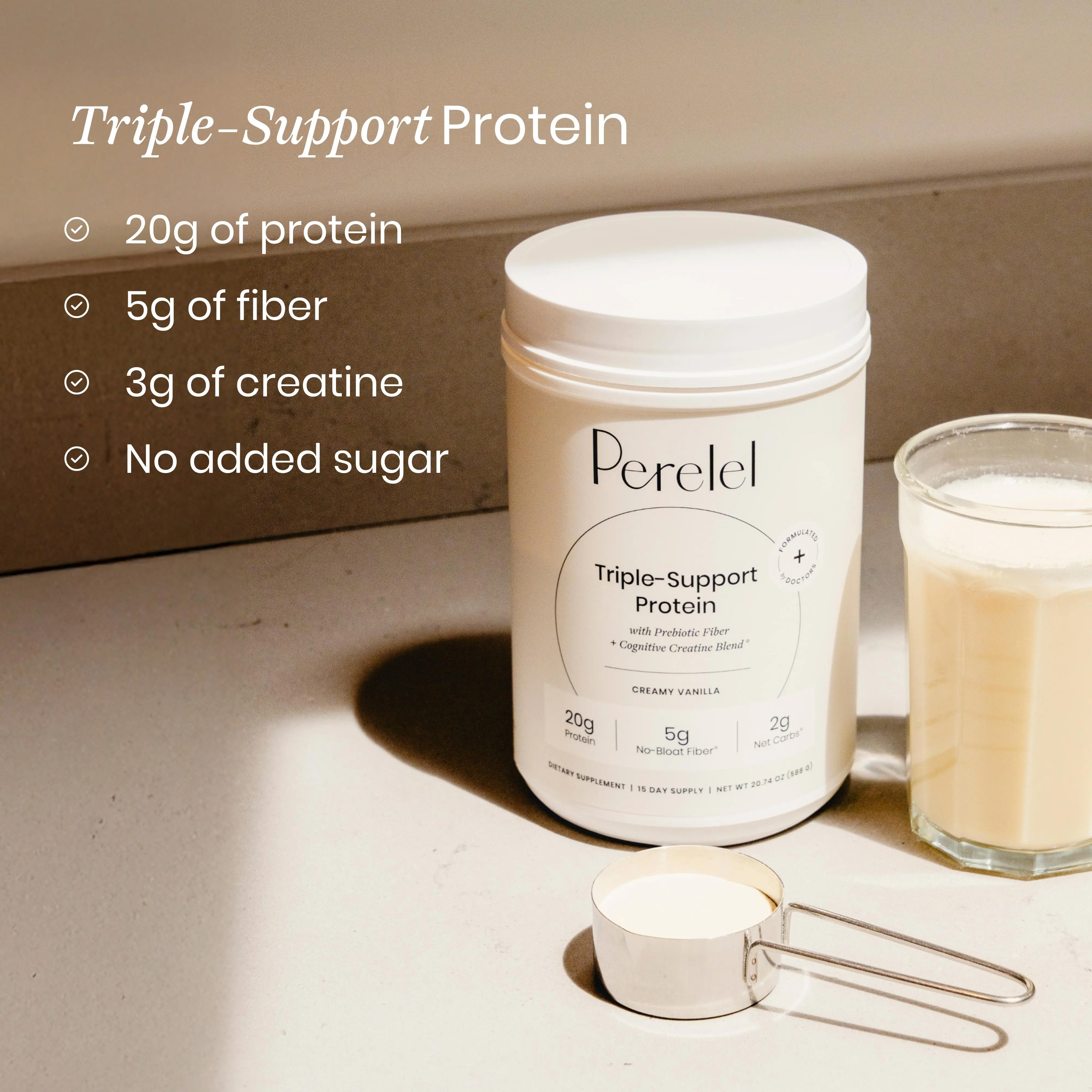 Still hungry after your protein shake? It might be missing what your body actually needs. That’s why we made Triple-Support Protein: plant protein + fiber + creatine in one scoop. 💪