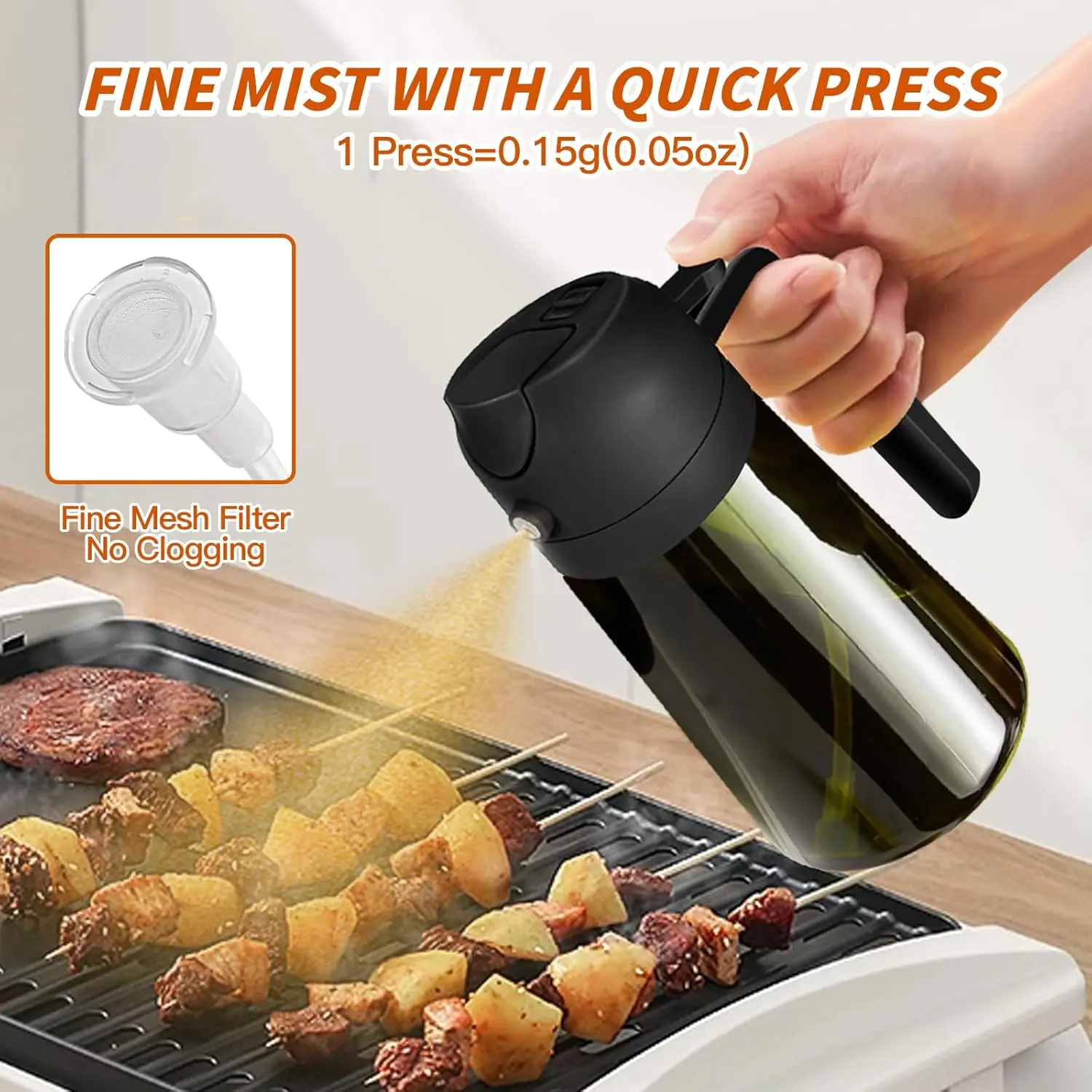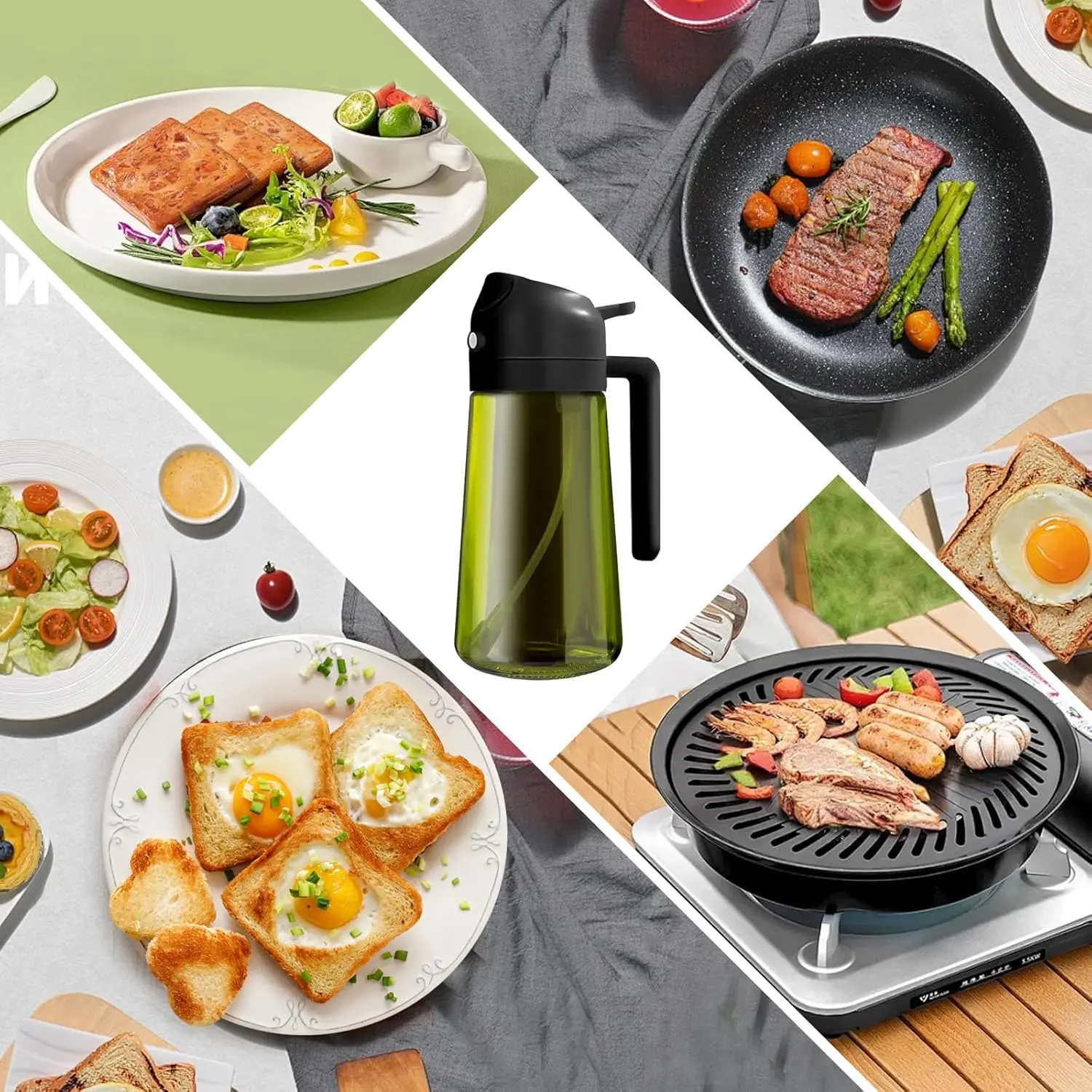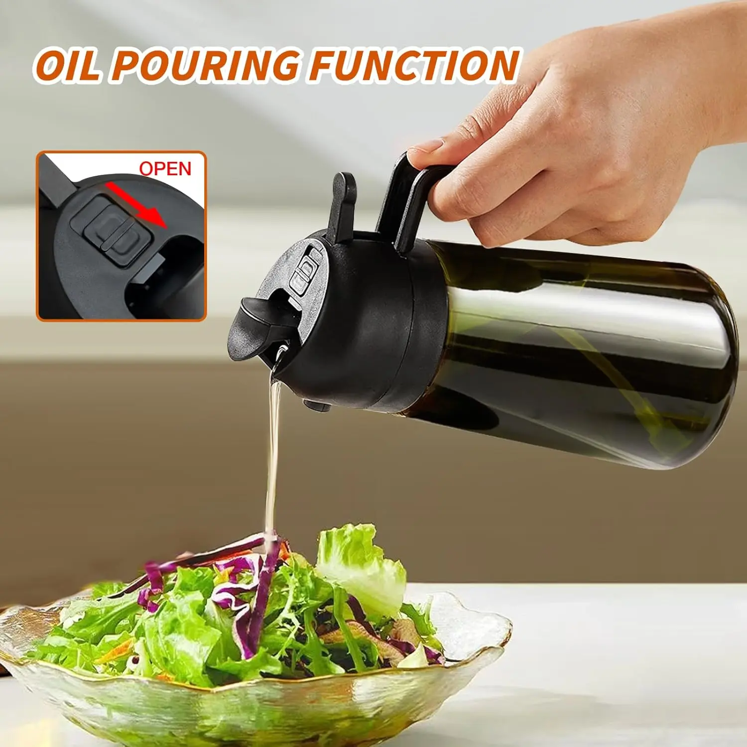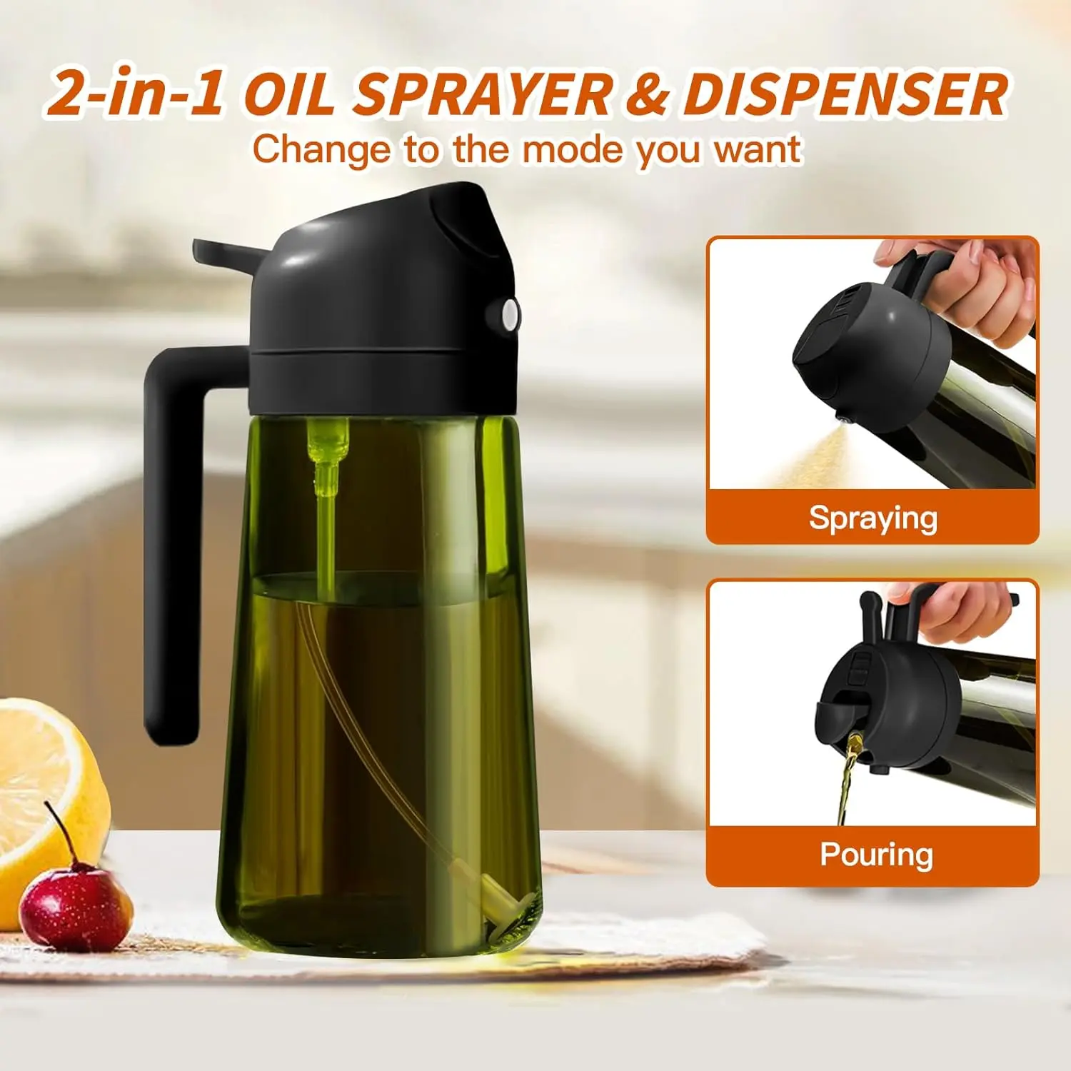 This 2-in-1 Olive Oil Sprayer and Pourer is perfect for cooking. It includes stickers for labeling, making it a practical kitchen gadget for home use. Ideal for air fryer, salad, baking, and daily cooking. The bottle measures 7.21 inches tall and 3.15 inches wide, ensuring comfortable handling.