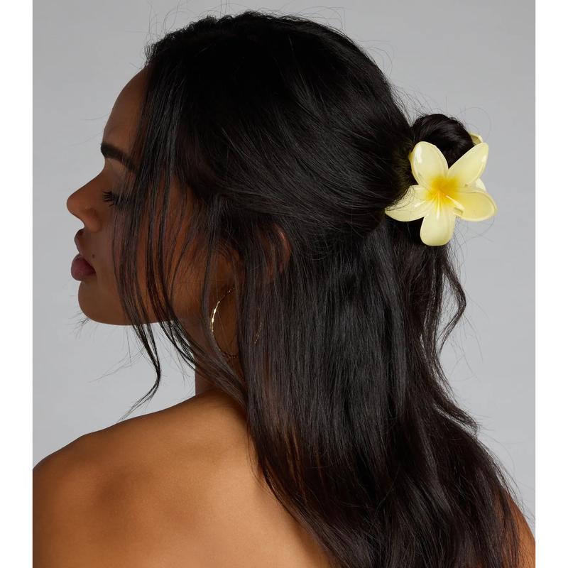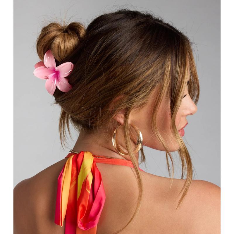 Vacay mode activated! Show off these tropical flower hair claw clips while on your getaway or a chic pool party.