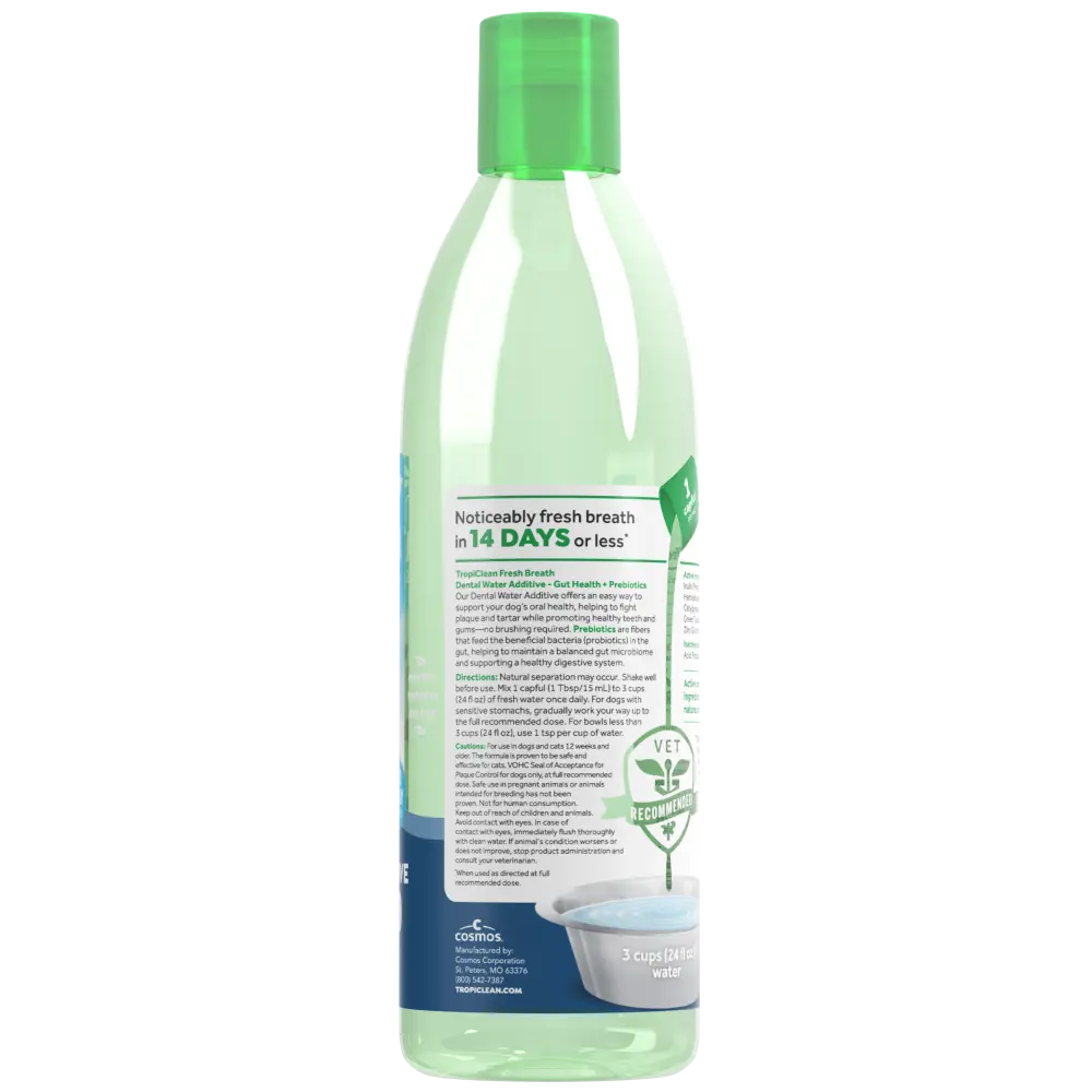 5. TropiClean Fresh Breath Dental Water Additive Plus Gut Health for Dogs