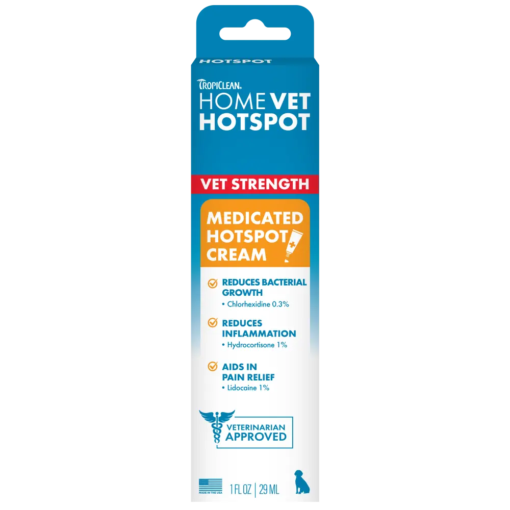 HomeVet medicated line by TropiClean is a vet recommended solution collection that provides your pet with the rapid and effective relief they need to improve and feel better. Our dog hot spot cream offers rapid relief you can count on, right from home. As always, keep out of reach of children.