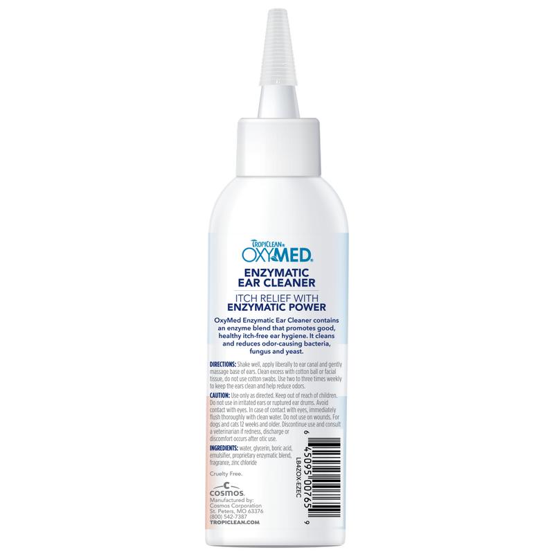 TropiClean OxyMed Enzymatic Ear Cleaner for Pets is a gentle yet powerful ear wash for dogs and cats that helps keep ears clean, fresh, and free from irritation. Formulated with an advanced blend of 8 active enzymes, this pet ear cleaner works to break down and remove dirt, wax, and debris while providing fast relief from itchiness caused by bacteria, fungus, and yeast.