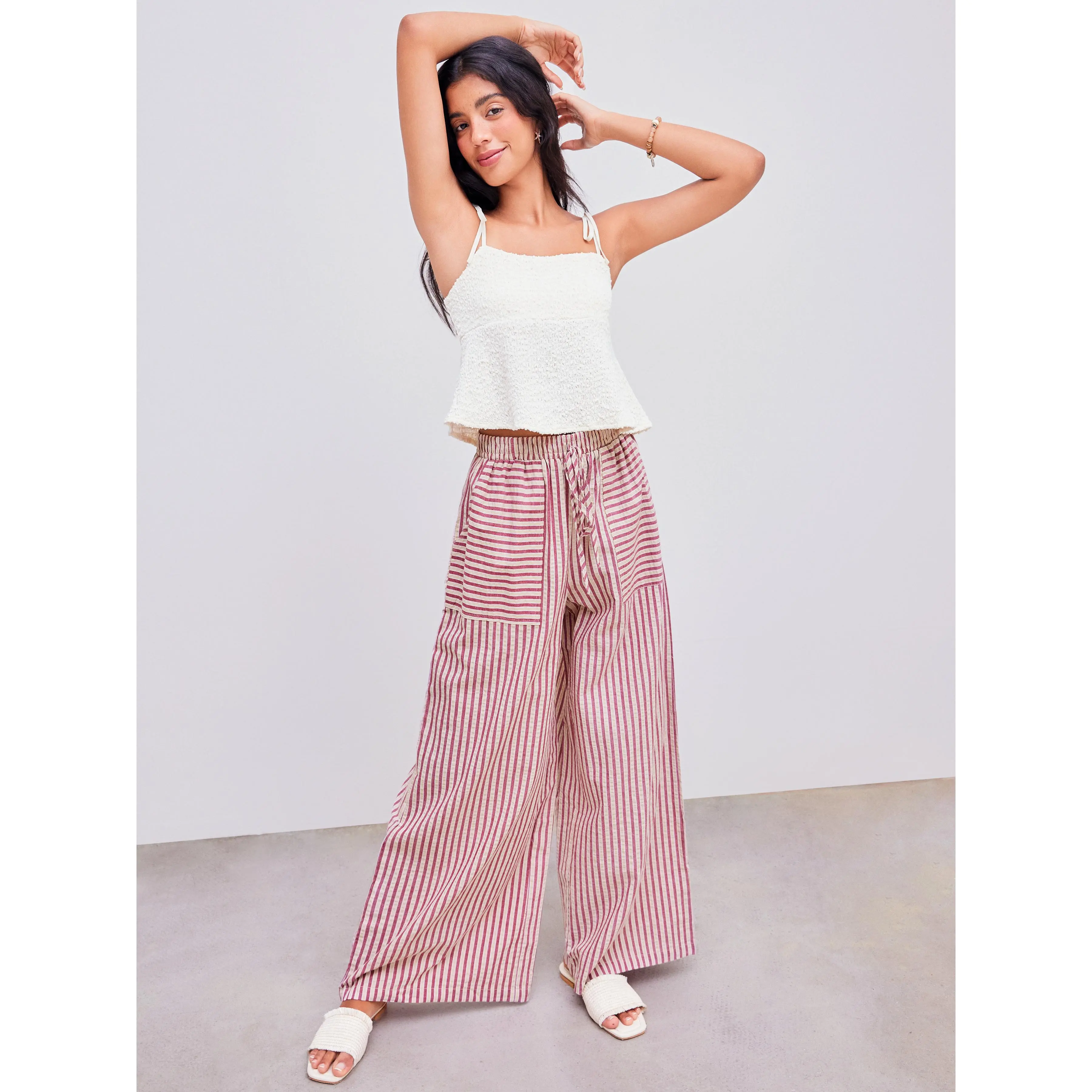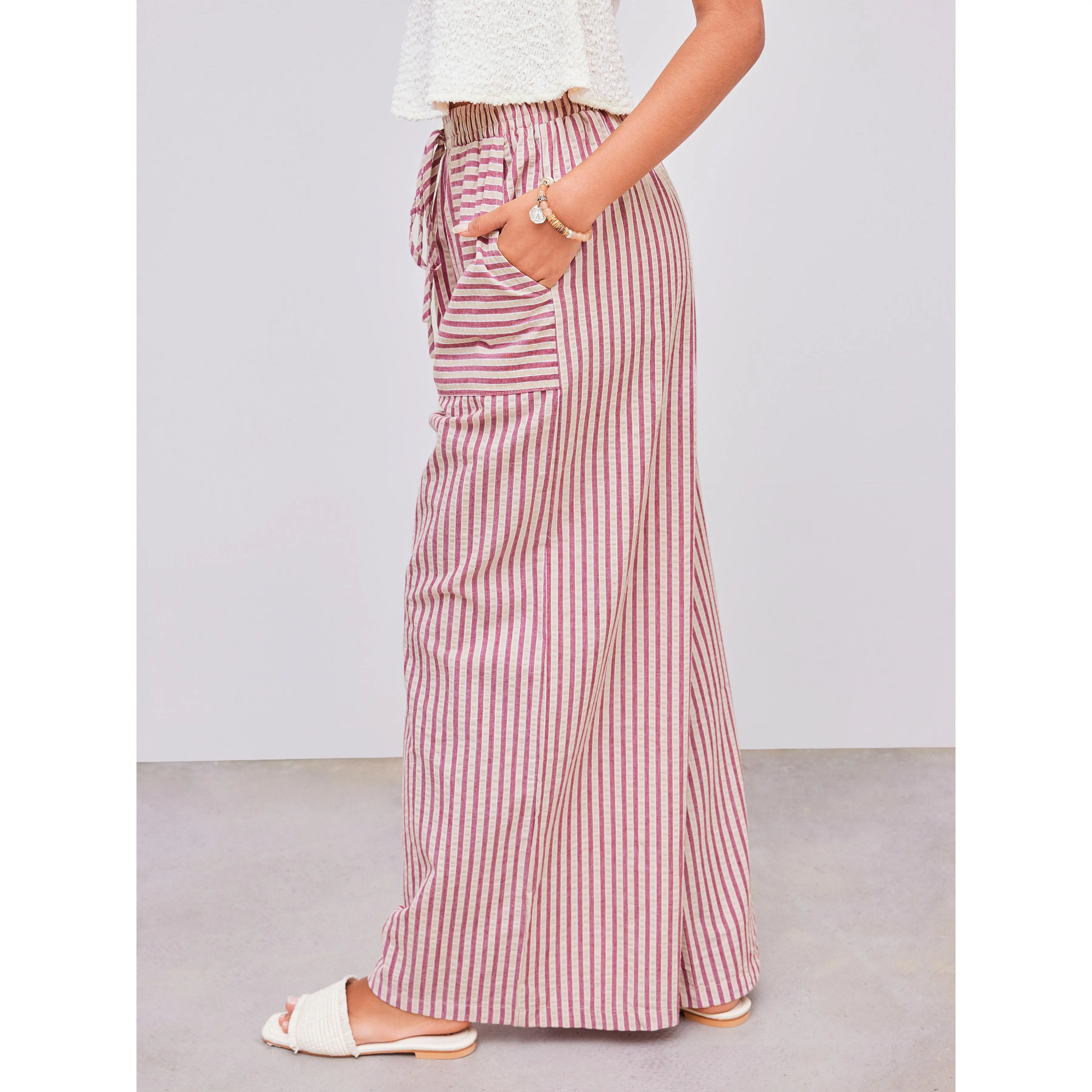 Cider [size 2-26] Woven Mid Rise Stripe Knotted Pocket Trousers