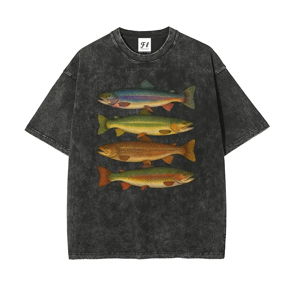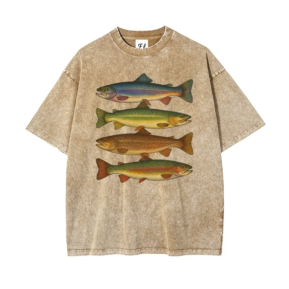 5. Trout, fishing enthusiast, fish lover Oversize Unisex Washed T-Shirt for Women and Men's Unisex Fit Batik Cotton Oversize Streetwear Menswear Super Soft Pre-Shrunk