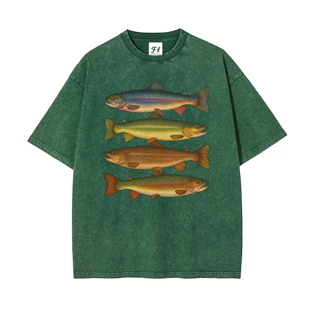 Trout, fishing enthusiast, fish lover Oversize Unisex Washed T-Shirt for Women and Men's Unisex Fit Batik Cotton Oversize Streetwear Menswear  Super Soft Pre-Shrunk