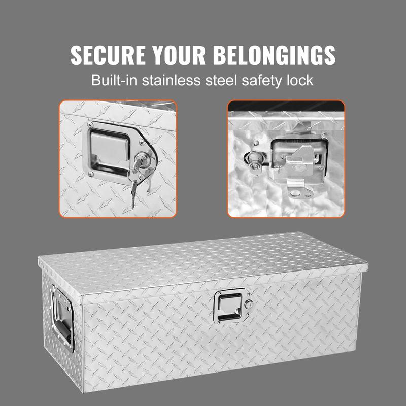 ·Last A Lifetime: VEVOR truck tool box is constructed from lightweight yet durable aluminum alloy, featuring a diamond tread pattern and double-sided power coating process. This design helps to prevent rust, corrosion, and abrasion, ensuring long-lasting use for several years. Additionally, the tool box is equipped with upgraded corners to secure the packaging and prevent any damage or deformation during transportation.