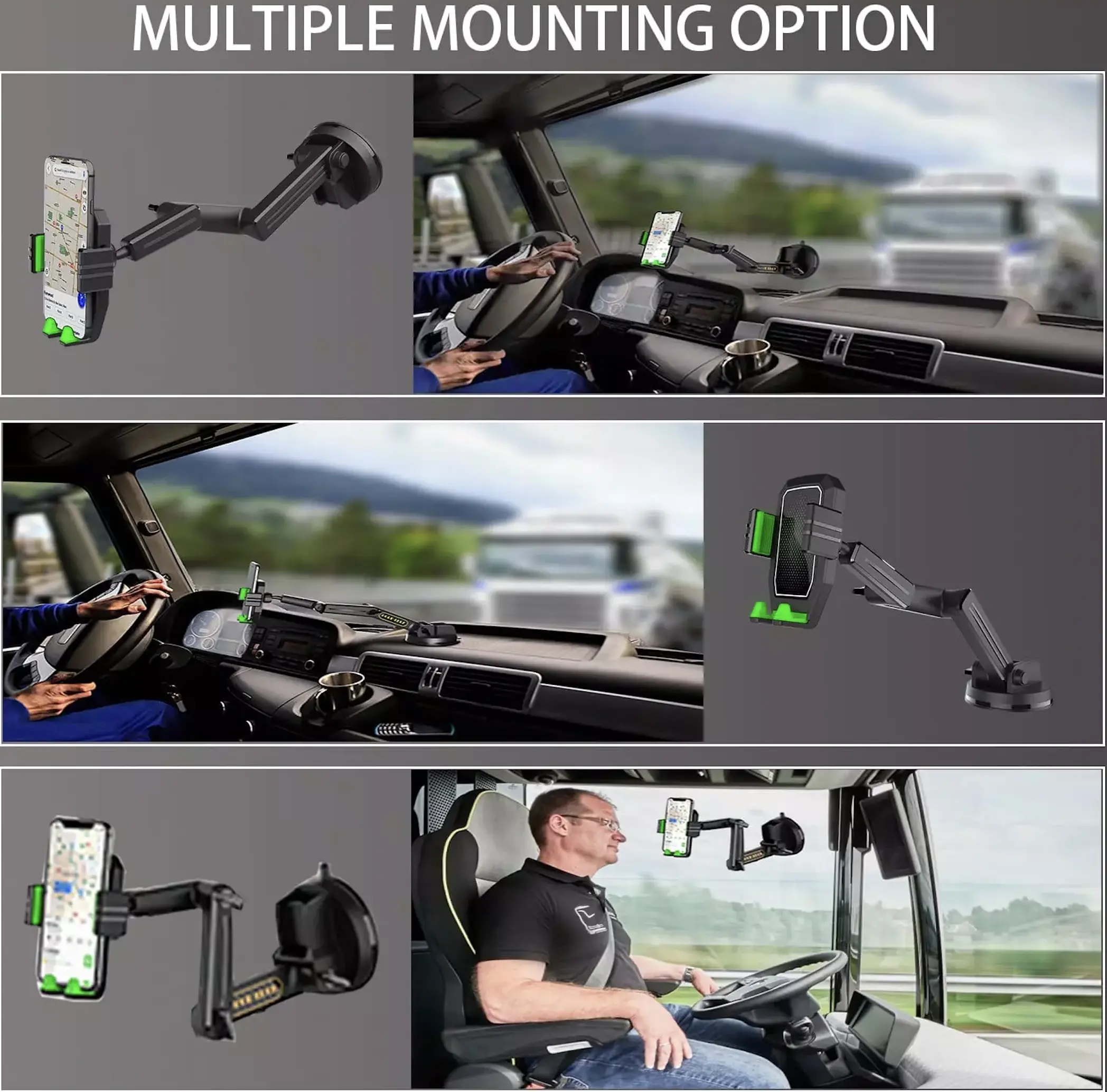 Especially Designed for Trucks:With 16.9 inches long arm, this truck phone mount can use on different surfaces of heavy-duty vehicles, such as bucket trucks, SUVs, Vans, Buses, and heavy-duty trucks, whether you need to use it on the windshield,the dashboard.