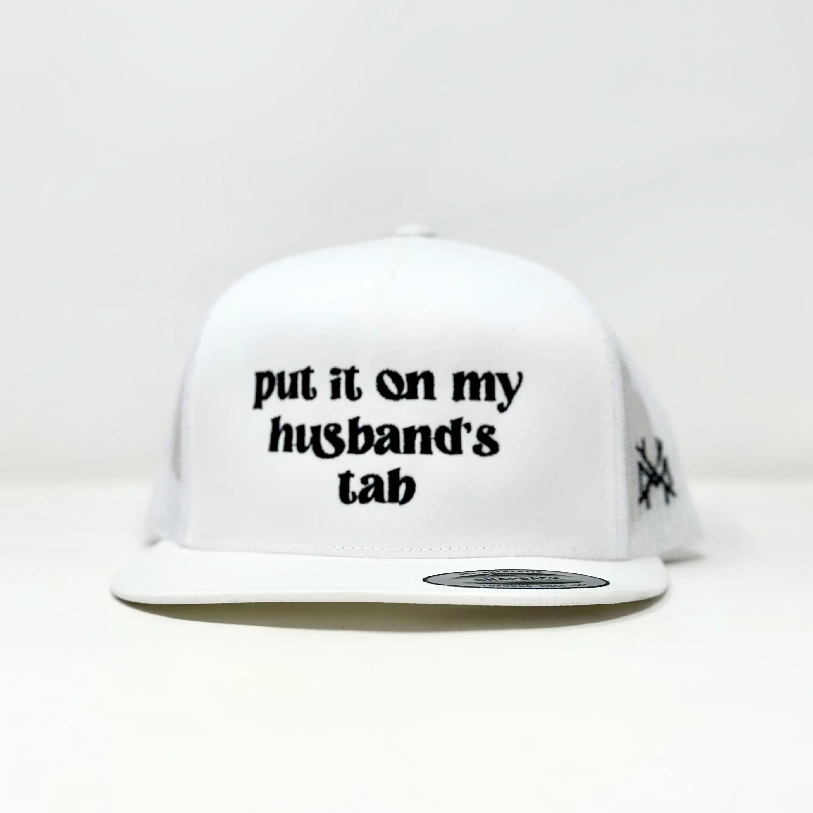The trucker hat features a trendy design with eye-catching lettering that is sure to turn heads.