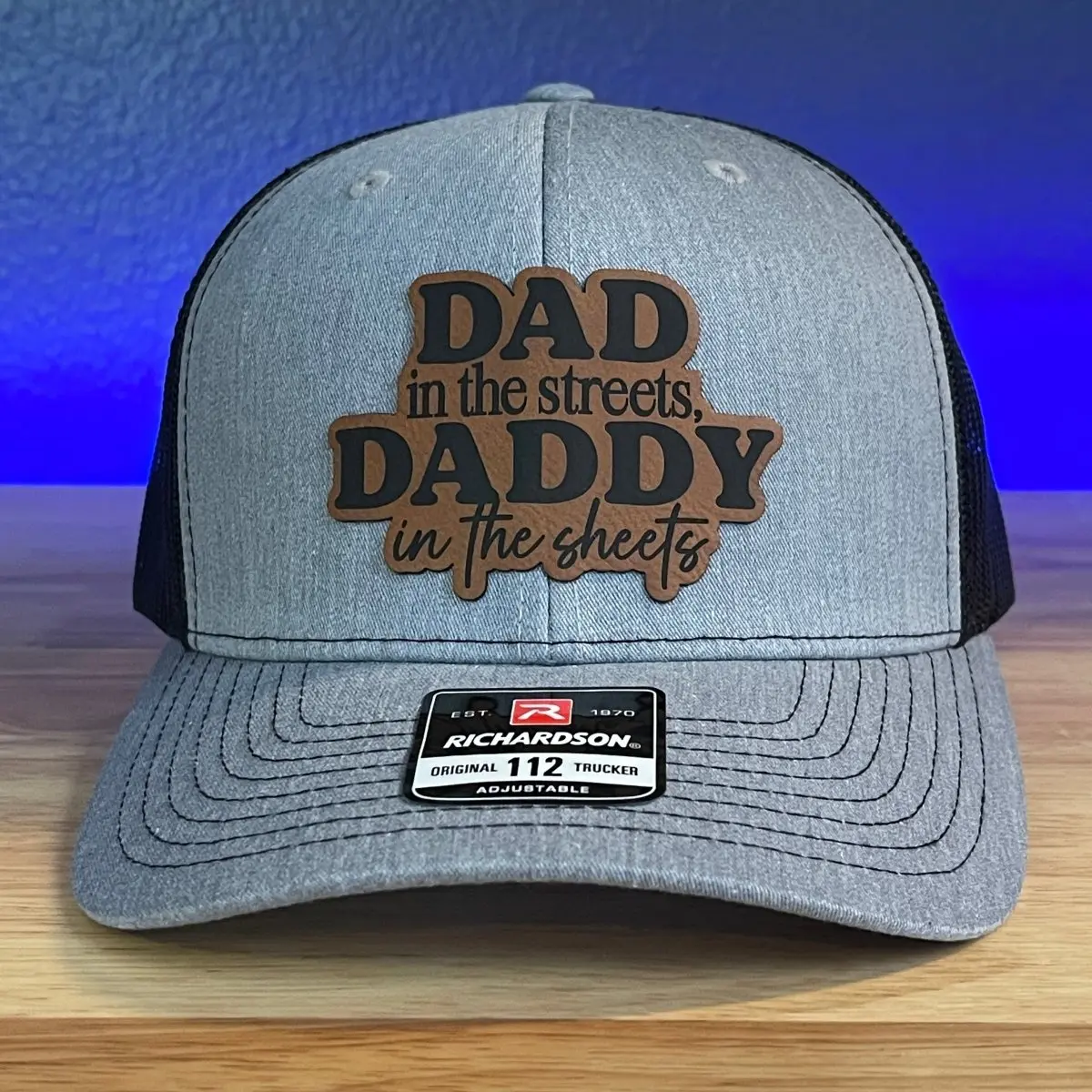 “Dad in the Streets, Daddy in the Sheets” Richardson 112 Trucker Hat - #fyp #foryoupage #leatherpatchhats #patchhats #dadinthestreetsdaddyinthesheets #bluecollar #maga #patriotic #2A