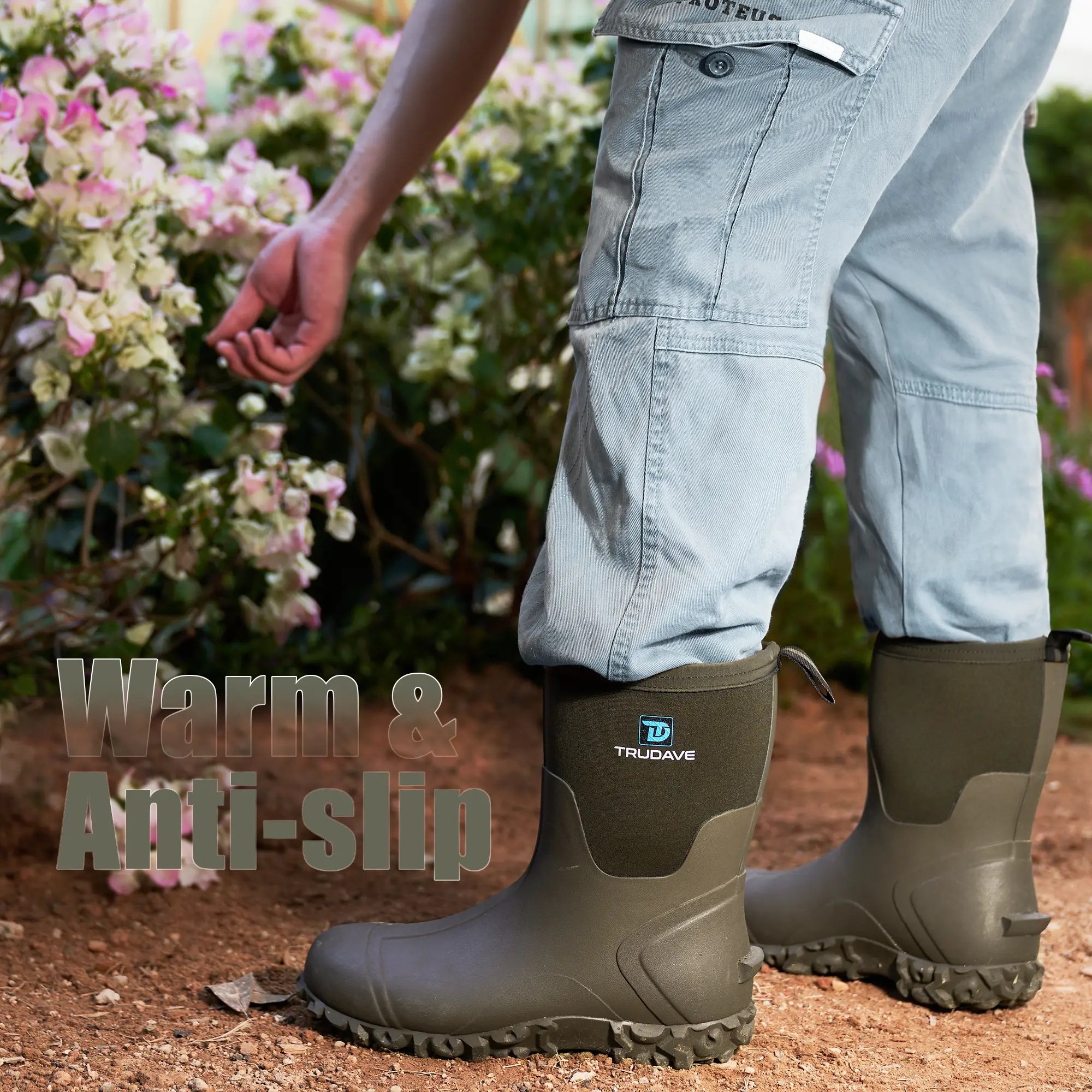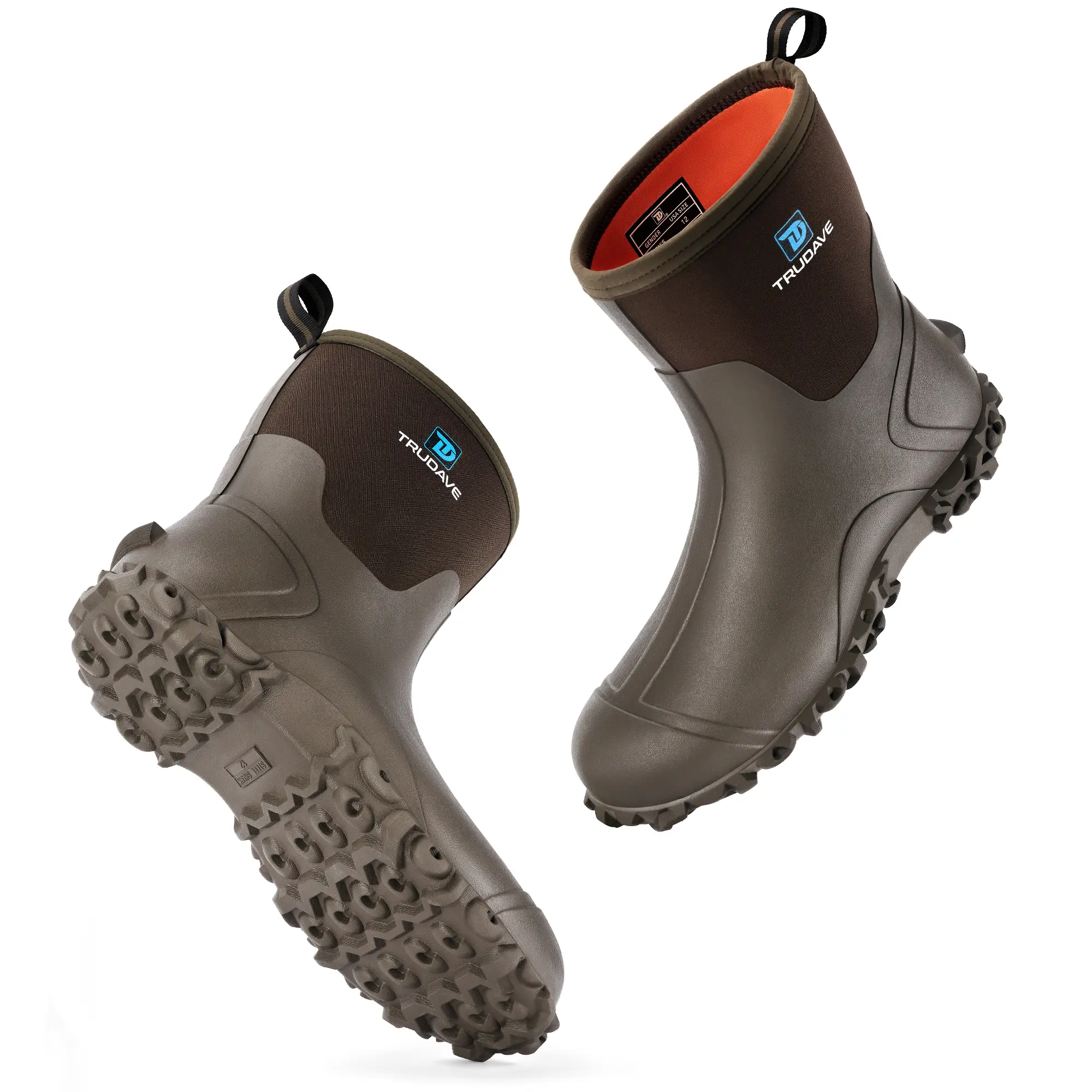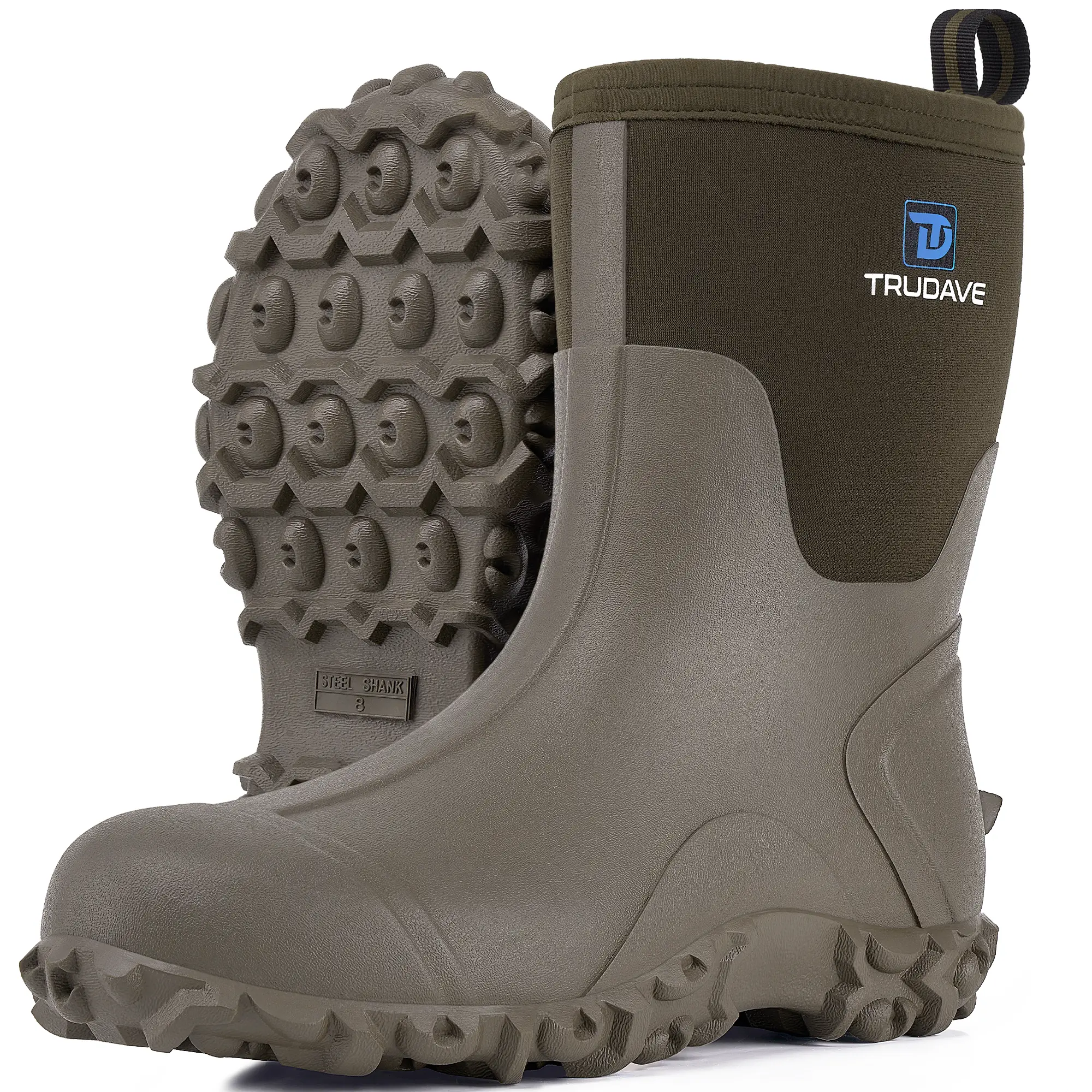 【100% Waterproof Design】Trudave men's mud boots waterproof are designed with natural rubber material that extends all the way above the ankle, which can well prevent water and objects from seeping into the inside of the boots, so that your feet always stay dry.