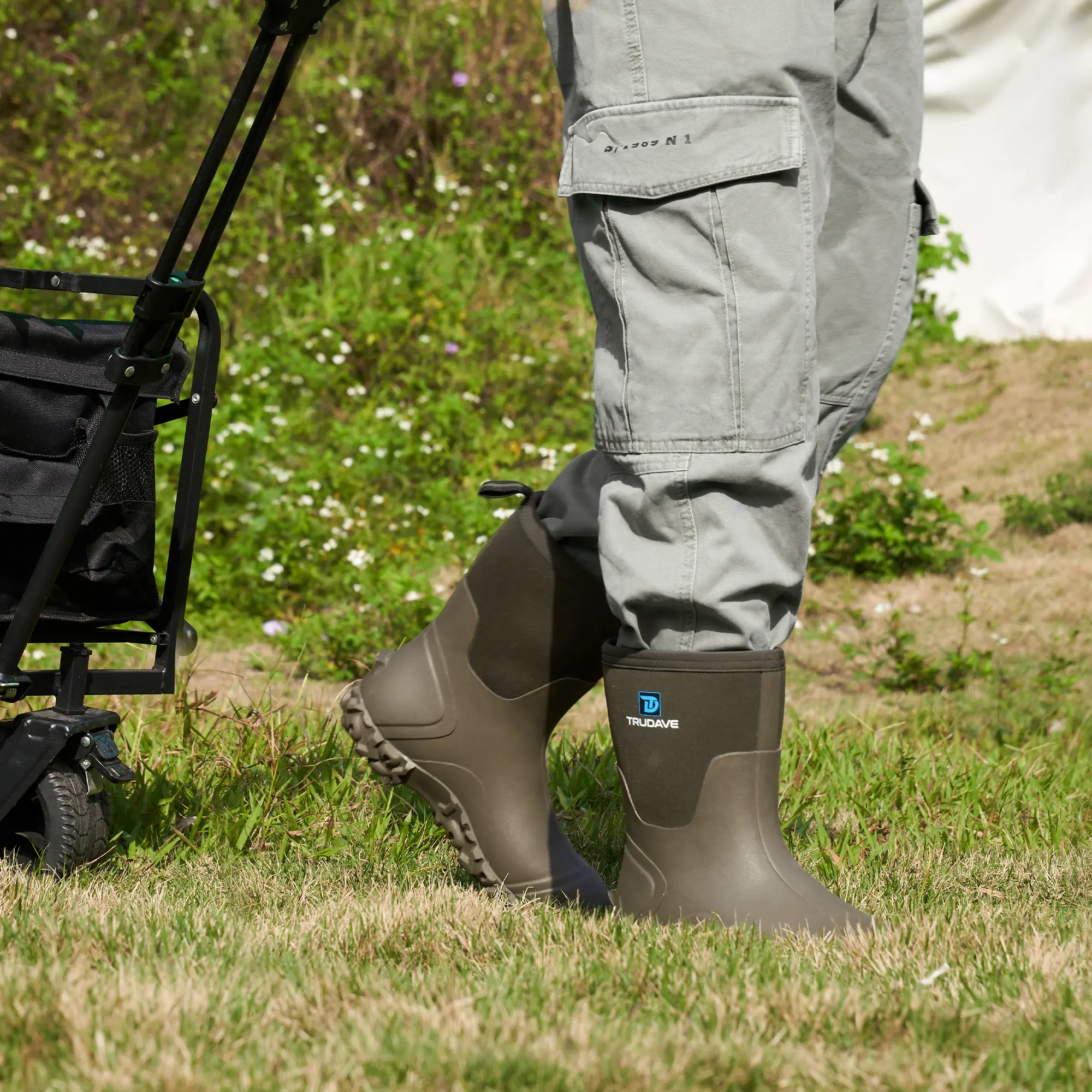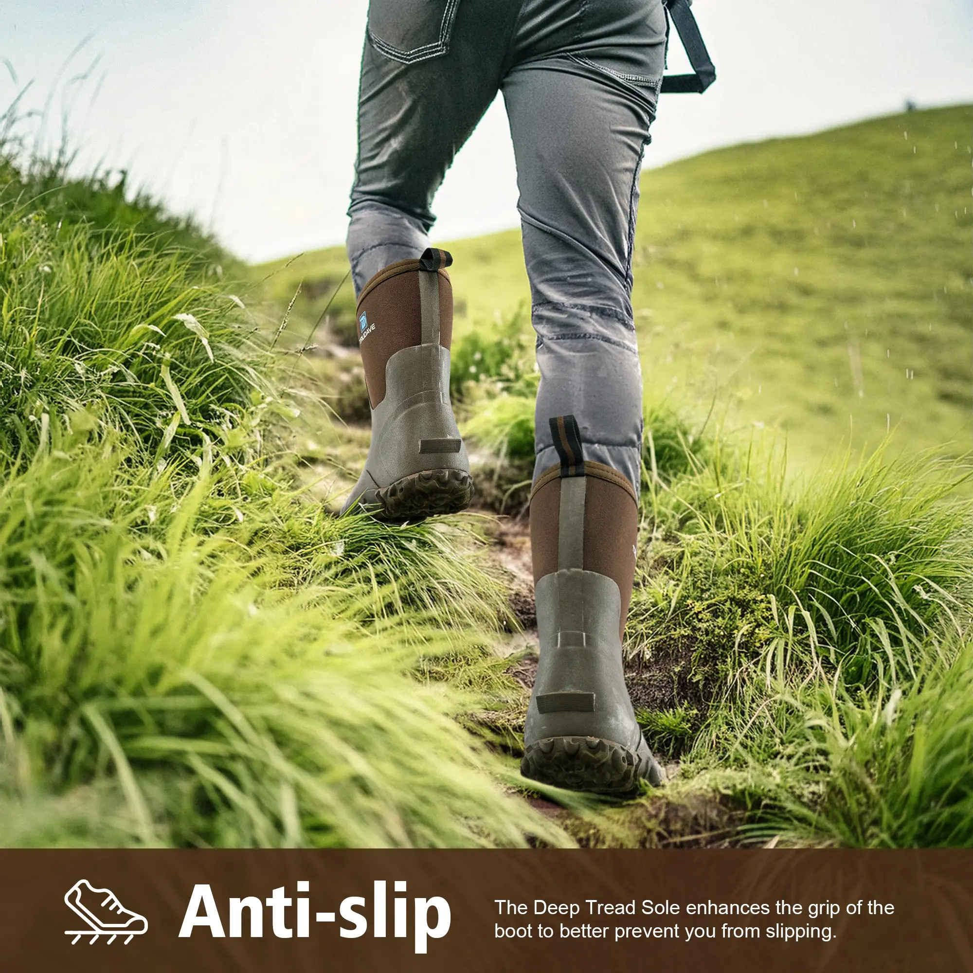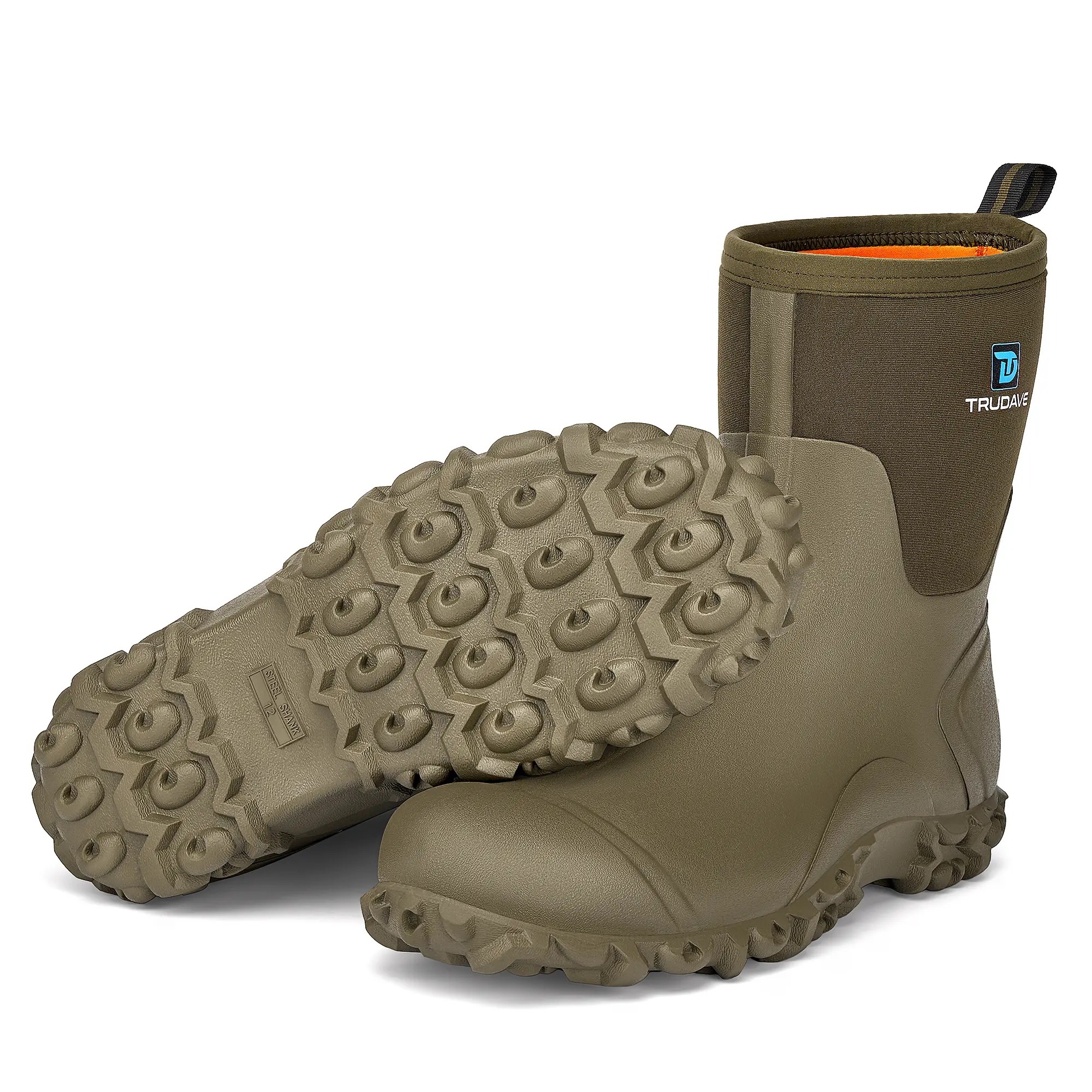 【100% Waterproof Design】Trudave men's mud boots waterproof are designed with natural rubber material that extends all the way above the ankle, which can well prevent water and objects from seeping into the inside of the boots, so that your feet always stay dry.