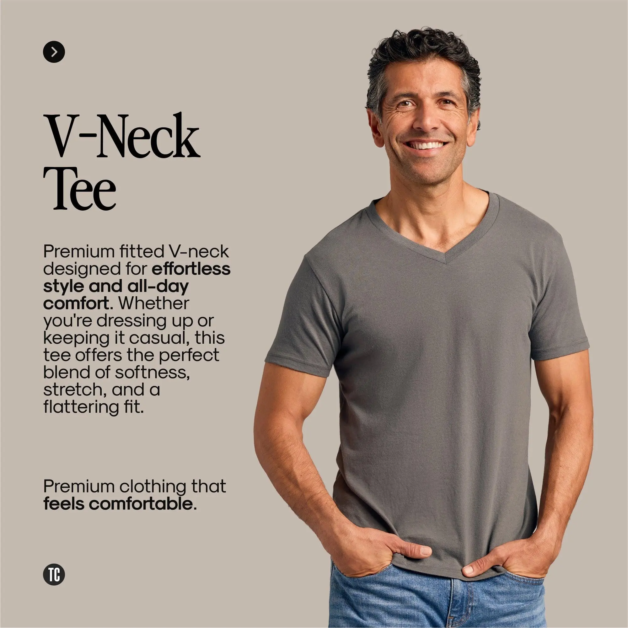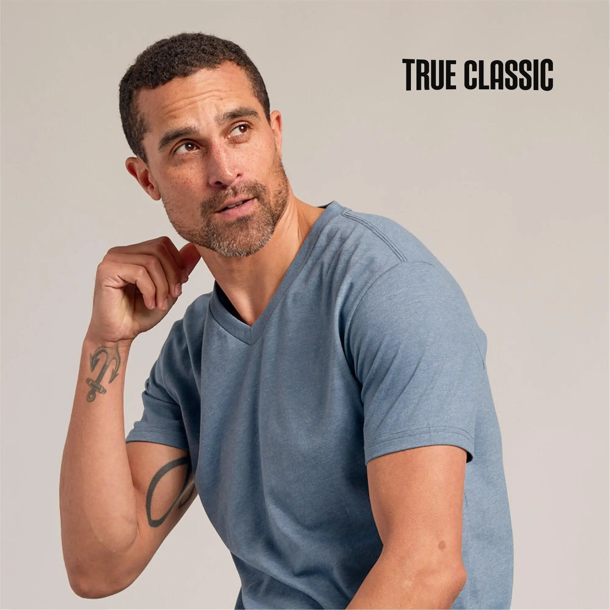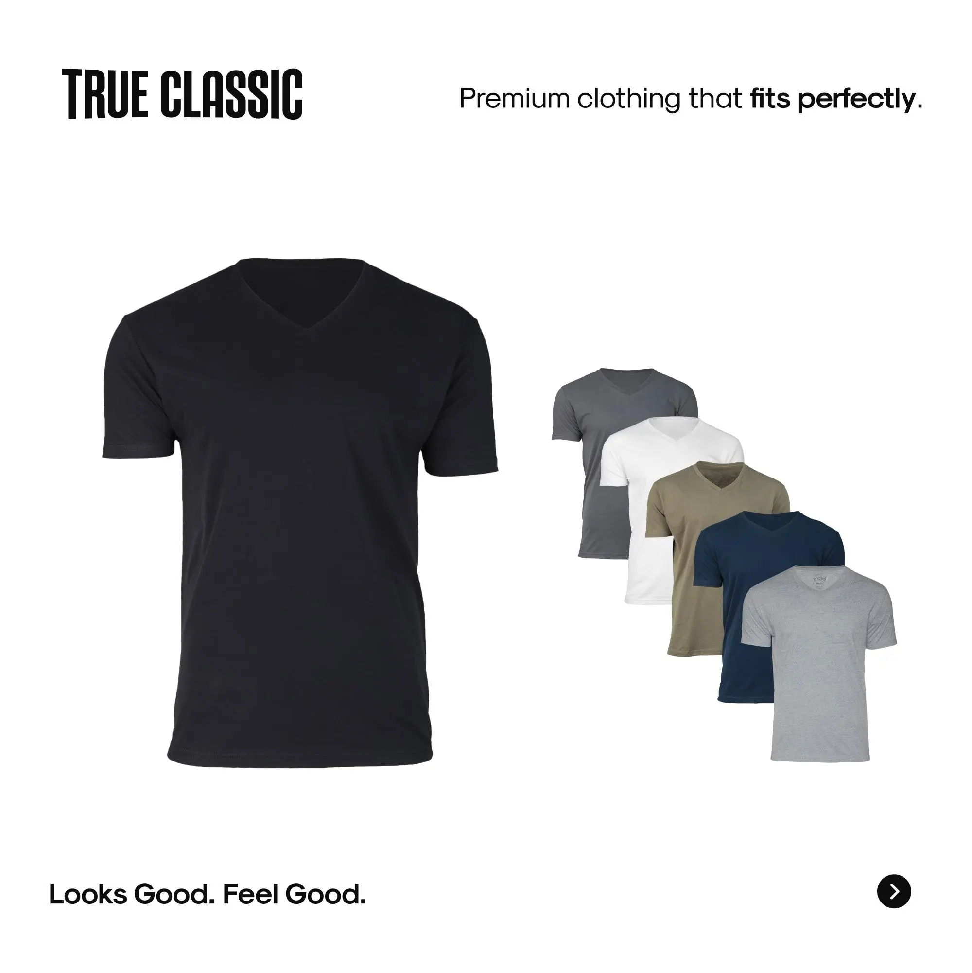 True Classic Men’s V-Neck T ShirtThe Fit You Want, The Comfort You Need – A V-Neck That Works AnywhereStep into effortless style with the tee that does it all. The True Classic Men’s V-Neck T Shirt is designed to elevate your everyday with a modern fit, ultra-soft feel, and a clean neckline that pairs with everything. Whether you're layering it up or wearing it solo, this shirt is made to impress.Designed for a Flattering FitThe modern athletic cut enhances your arms, chest, and shoulders for a confident, clean silhouette.Lightweight, All-Day WearabilityMade from a breathable cotton-poly blend that keeps you cool and comfortable from day to night.Versatile Styling, Timeless LookWith its sleek V-neckline and tailored shape, this shirt transitions seamlessly between casual wear and dressed-up layers.Built for Long-Term ComfortTagless and shrink-resistant, it’s made to last and feel like new—wash after wash.Product Highlights