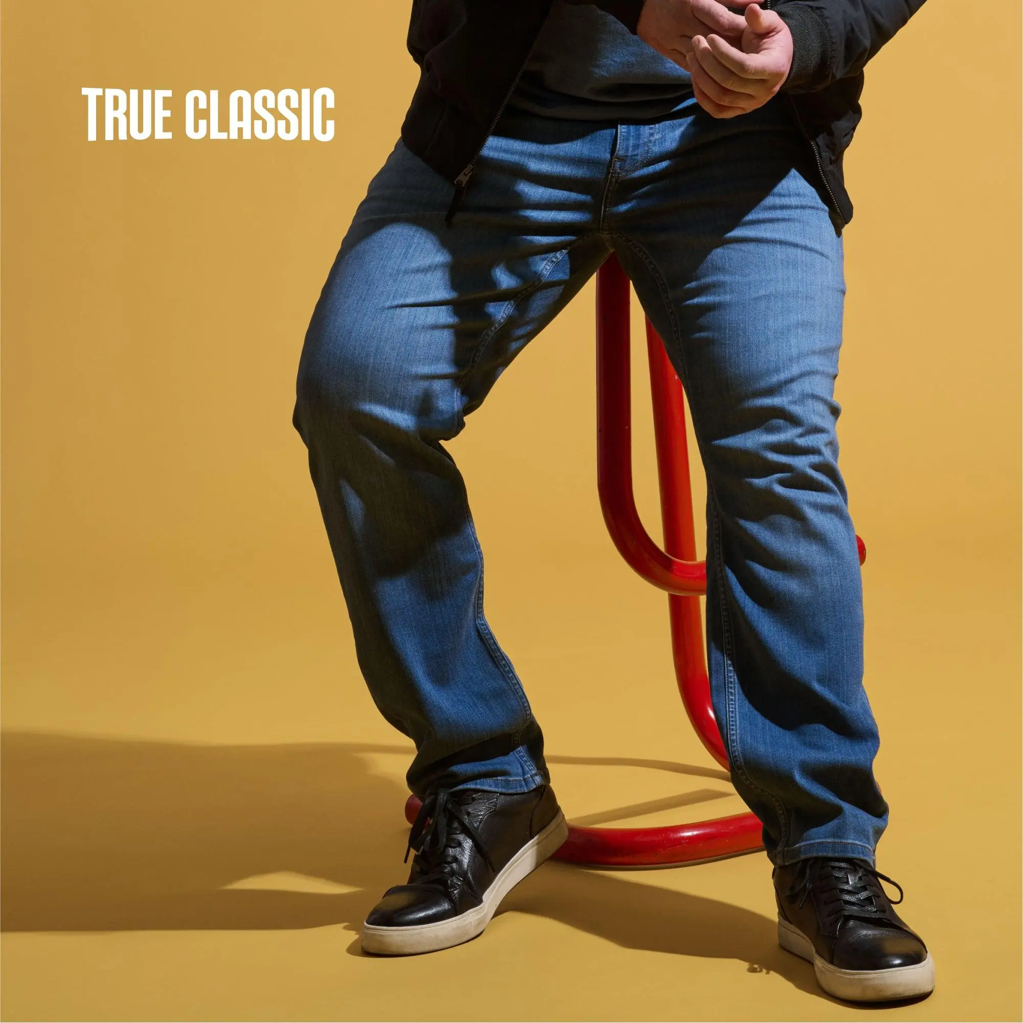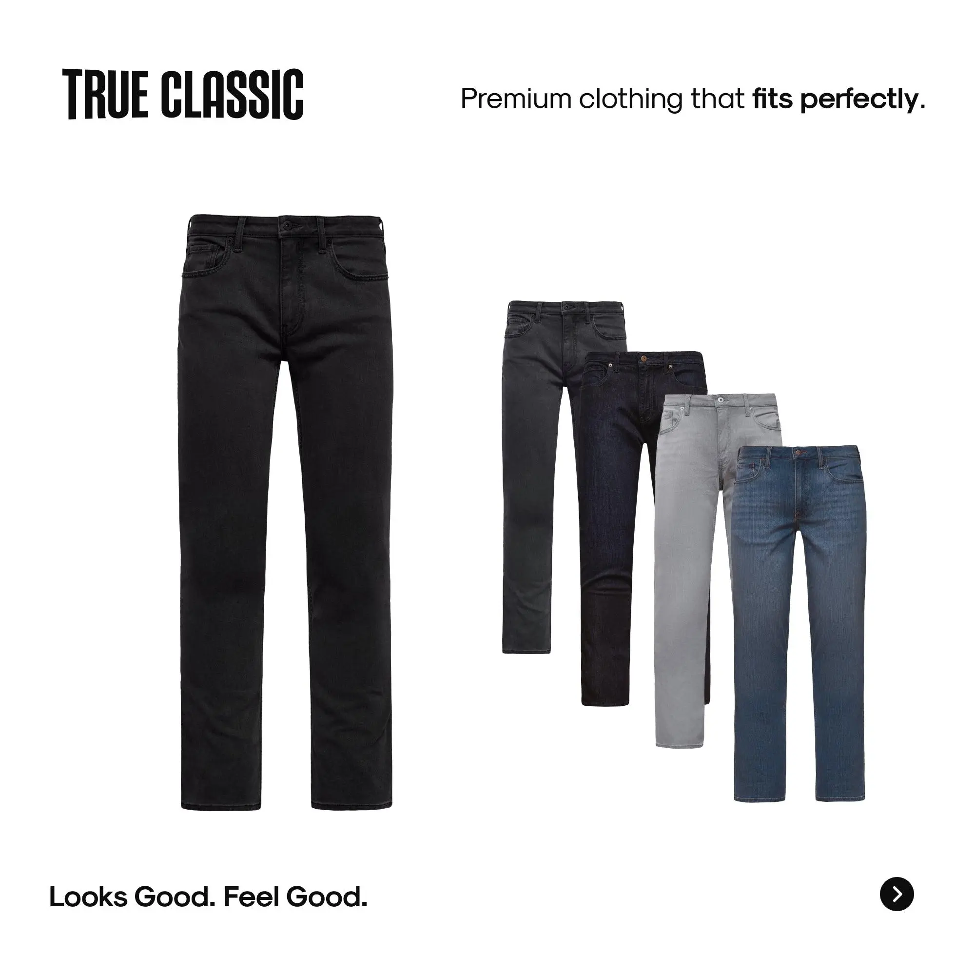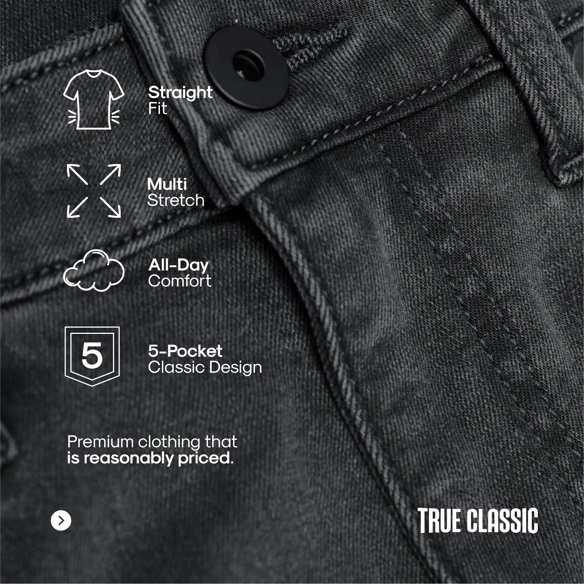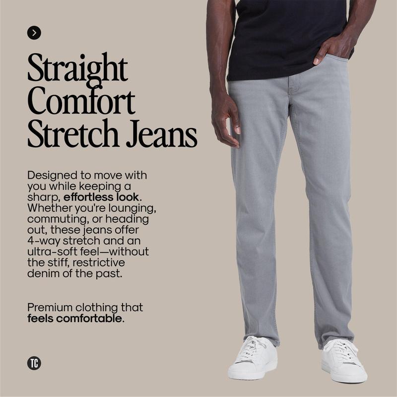 True Classic Men’s Straight Fit JeansThe Jeans That Feel Like Your Favorite Tee – Comfort Meets Classic Denim StyleSay goodbye to stiff denim. The True Classic Men’s Straight Fit Jeans are engineered with soft, breathable fabric and 4-way stretch so you can move freely—without sacrificing style. Designed for comfort, built for everyday wear, and versatile enough to dress up or down, these jeans will become your go-to pair.T-Shirt Softness, Denim StyleCrafted to feel like your favorite tee but look like premium jeans—soft, breathable, and made for all-day comfort.Built-In FlexibilityExperience unmatched freedom of movement with a 4-way stretch fabric blend that adapts to your day.Tailored for TodayStraight through the leg with a relaxed taper, these jeans deliver a clean, modern silhouette that works in any setting.Classic Design, Elevated Feel5-pocket styling, durable construction, and rich color make these jeans both timeless and ready for whatever’s next.Product Highlights