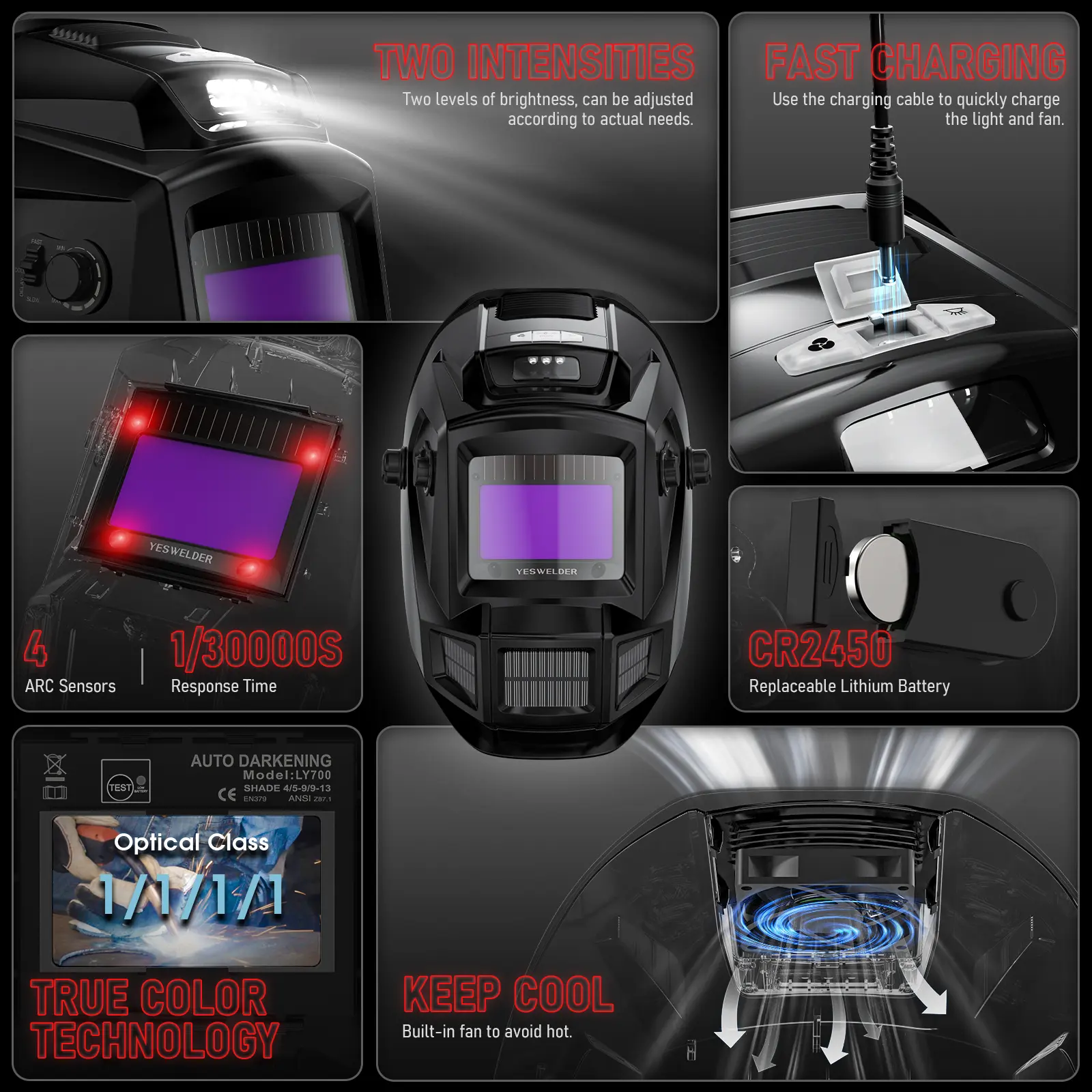 Note: Remember, the included cable charges only these features. When the helmet's main power runs low, simply replace the CR2450 battery to keep welding.
